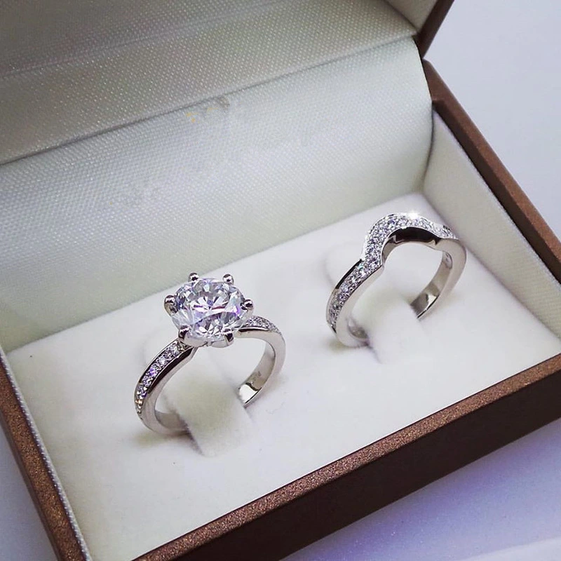 يوصي موقع التجارة الإلكترونية بمجموعة رائعة من خواتم البلاتين والزركون المكونة من ستة مخالب أوروبية وأمريكية