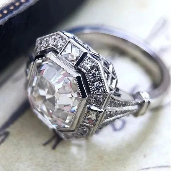 2021 مجوهرات يدوية أوروبية وأمريكية جديدة على طراز القصر القديم خاتم زركون نسائي أنيق خاتم خطوبة زفاف نسائي