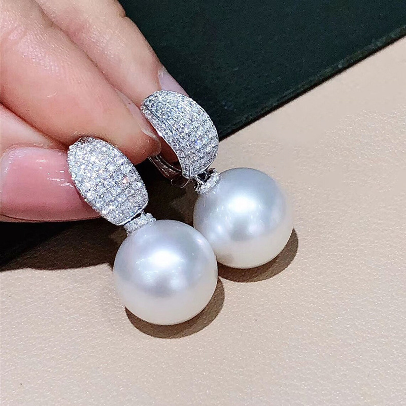 Aristocratic, gentle, ladylike pearl earrings for women, super shiny, micro-inlaid pearl earrings, celebrity magazine style