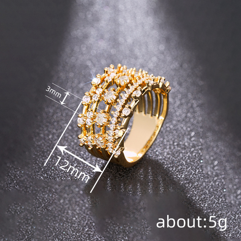 European and American luxury design ring fashionable temperament horse eye zircon ring multi-layer hollow design index finger ring
