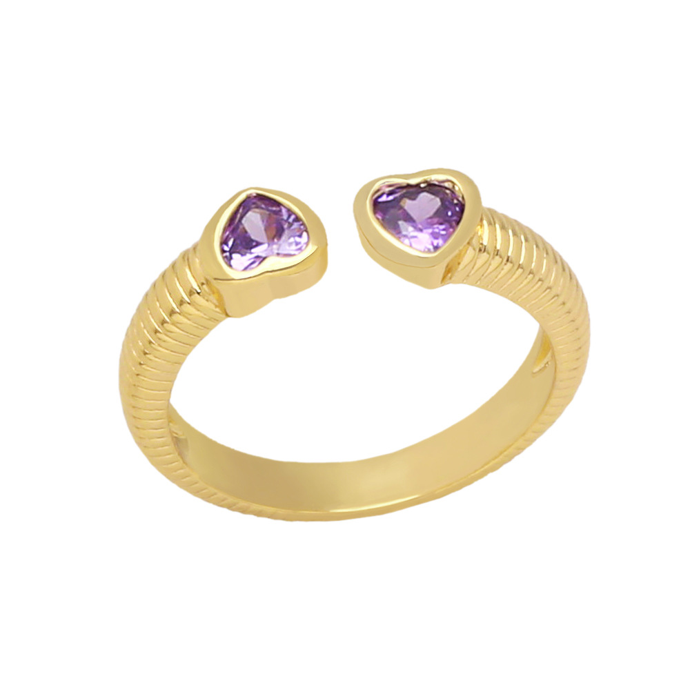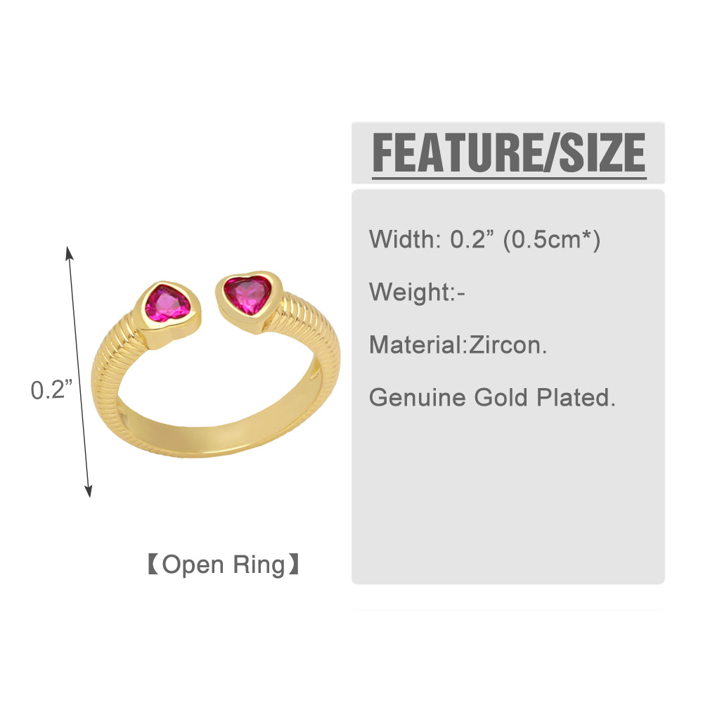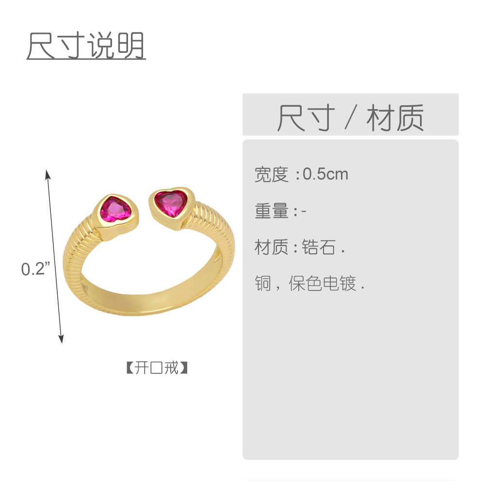 AS European and American simple love asymmetrical ring personality color heart-shaped zircon opening adjustable ring iq38