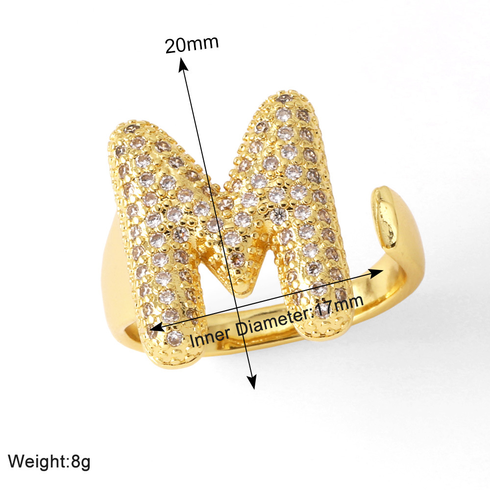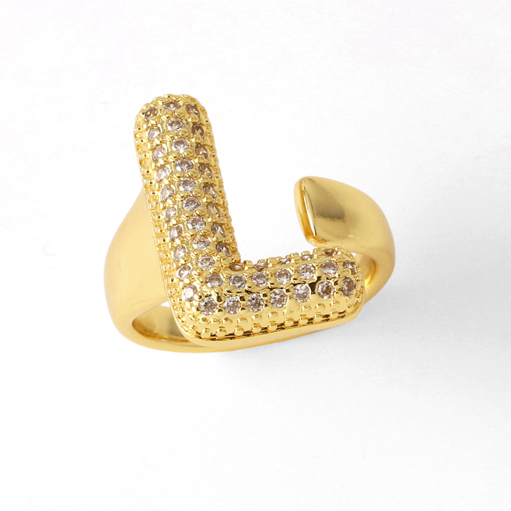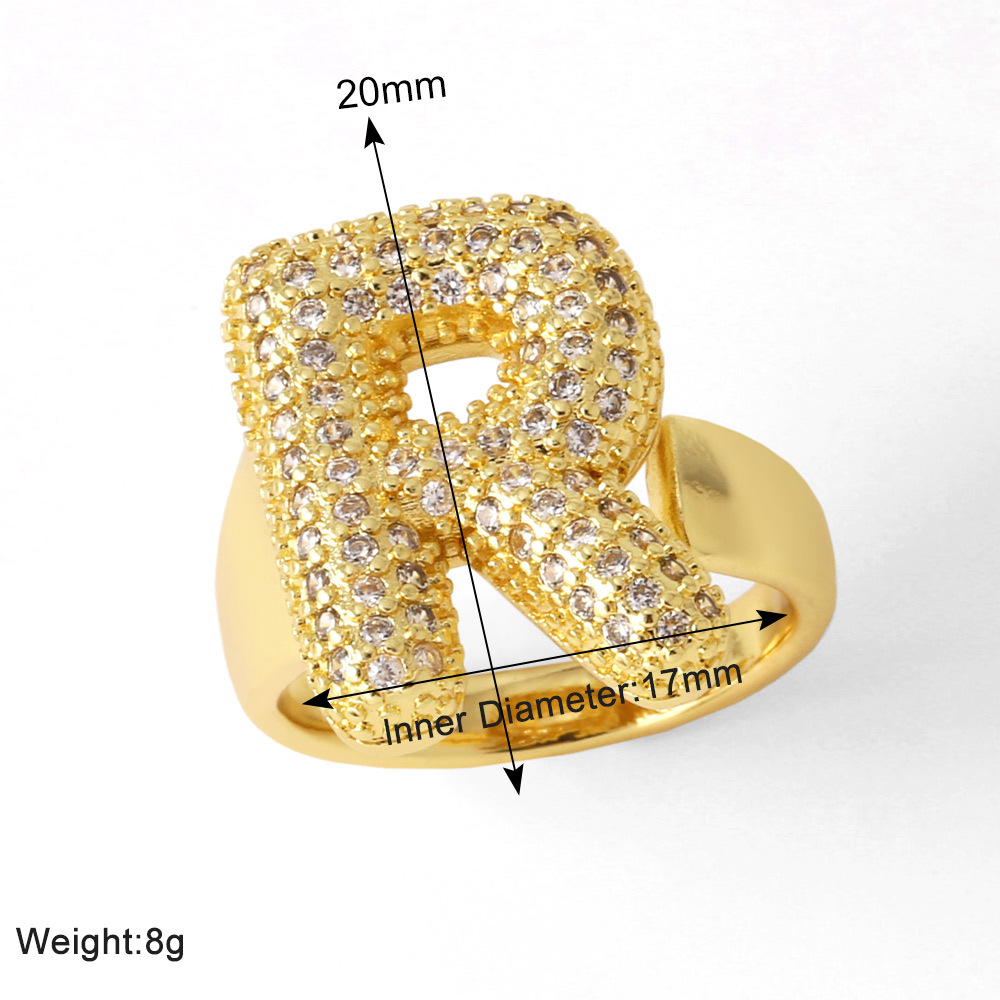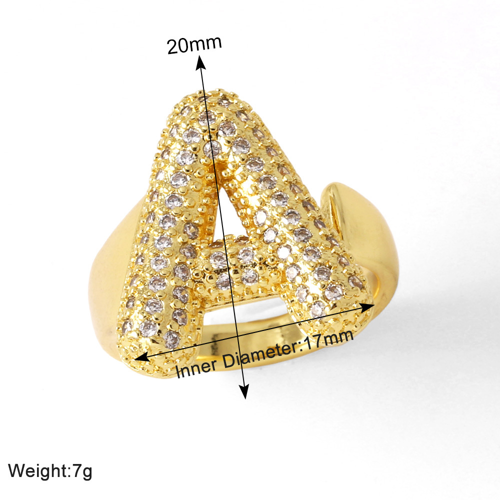 AS jewelry 26 English letters ring female gold-plated full zircon open ring rih31