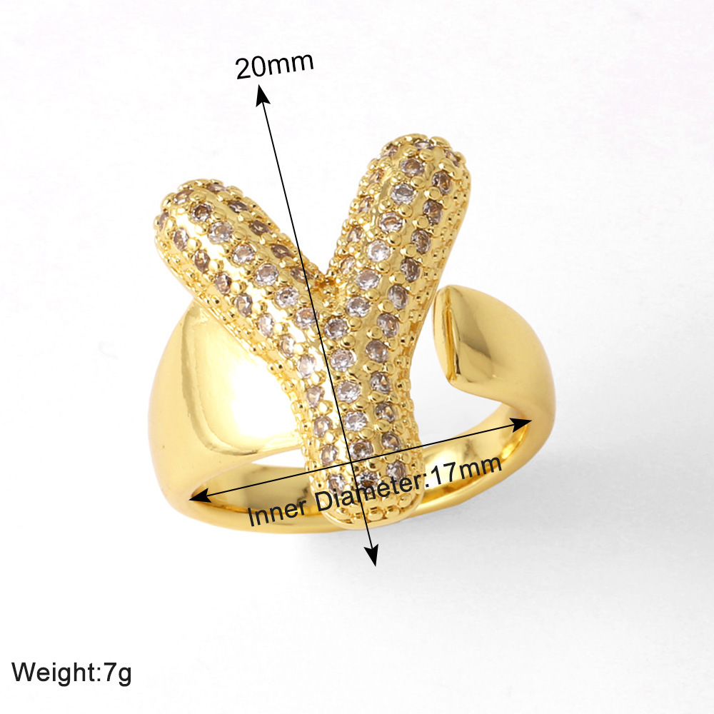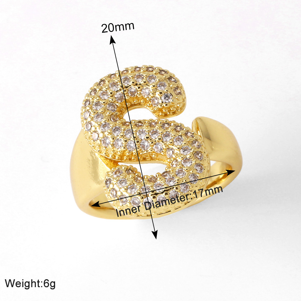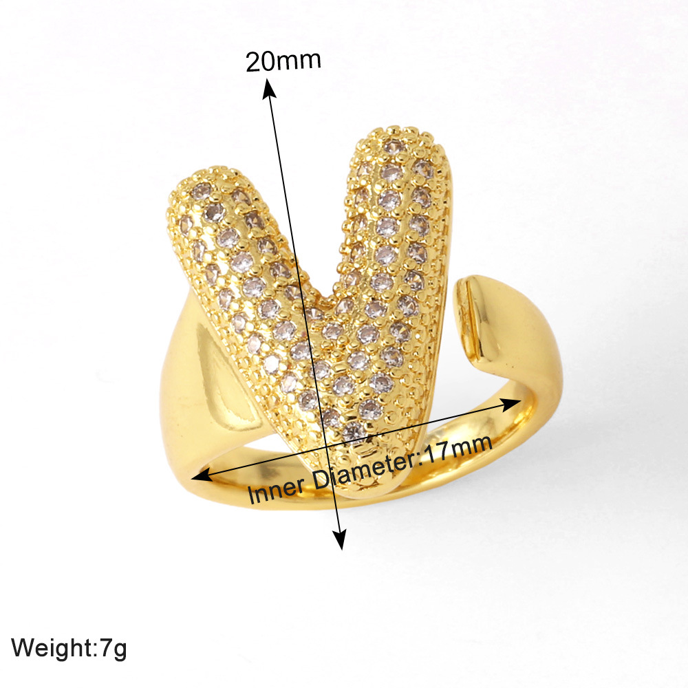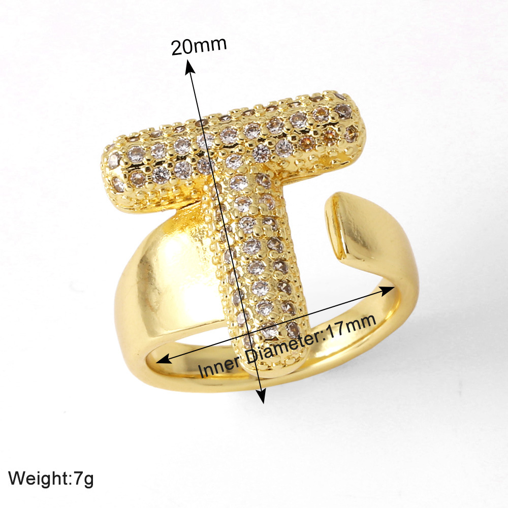 AS jewelry 26 English letters ring female gold-plated full zircon open ring rih31
