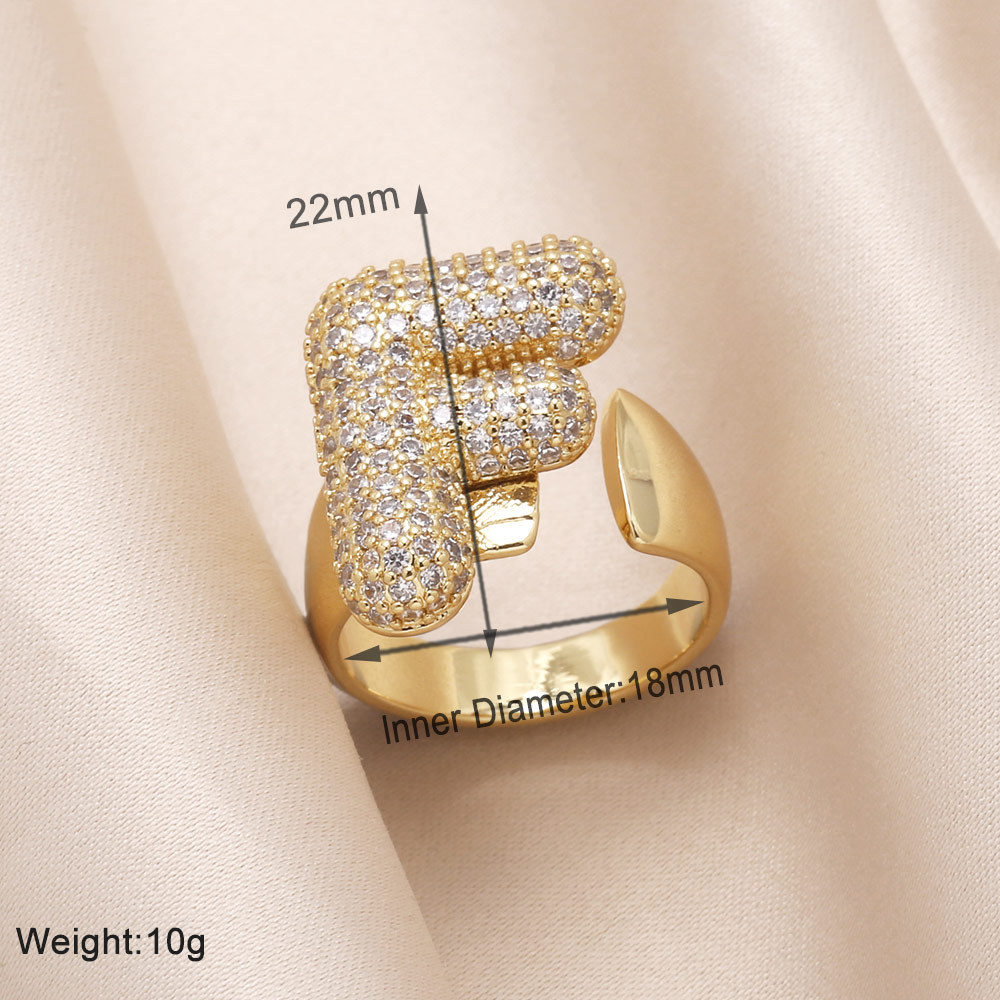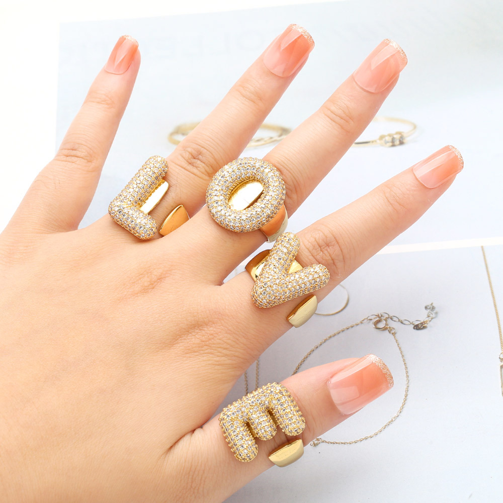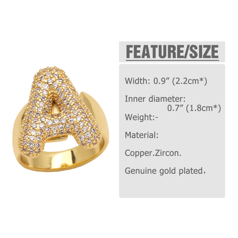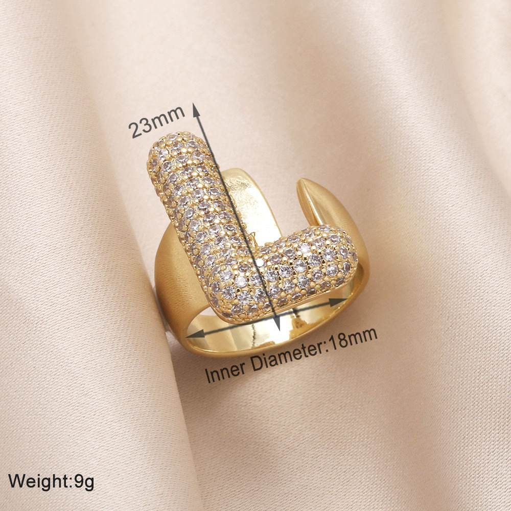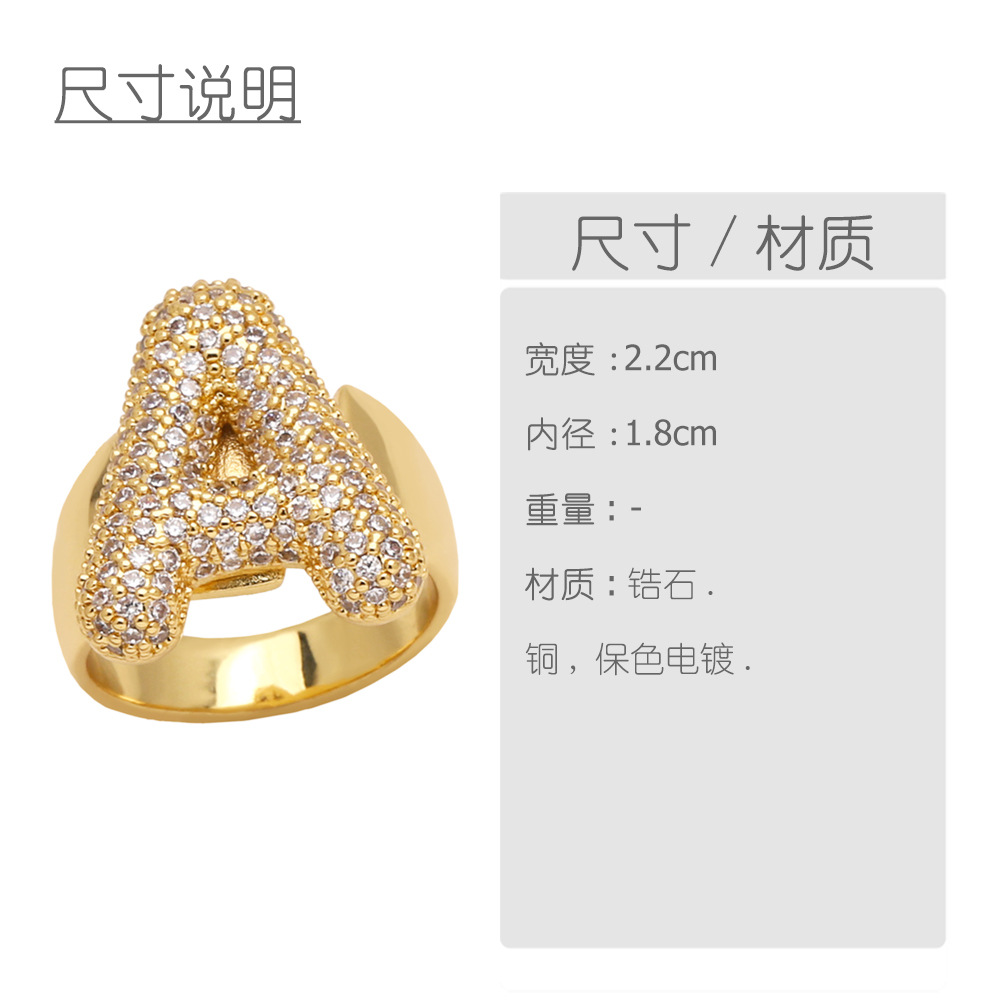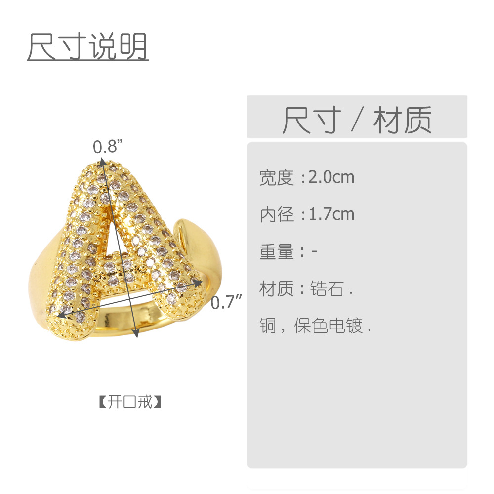 AS jewelry 26 English letters ring female inlaid with zircon gold-plated open ring rin50