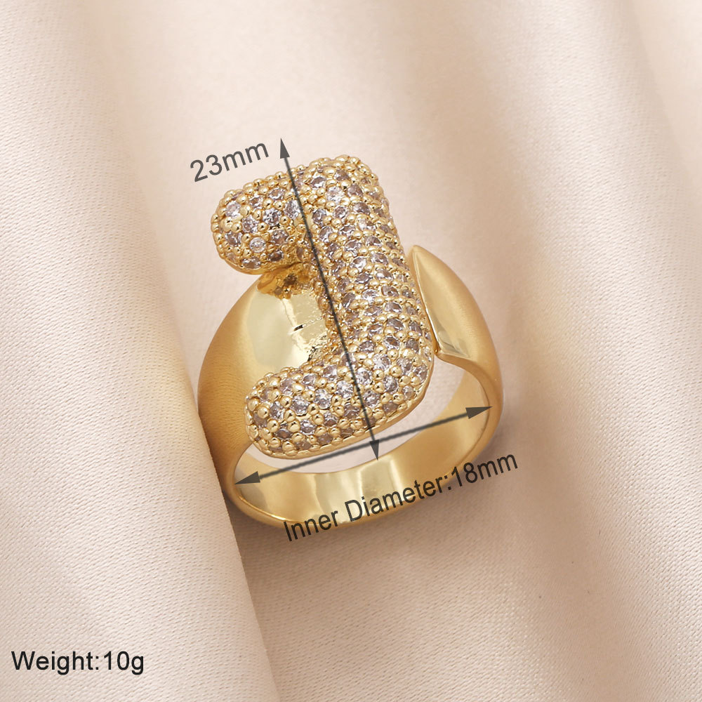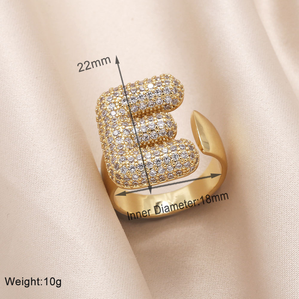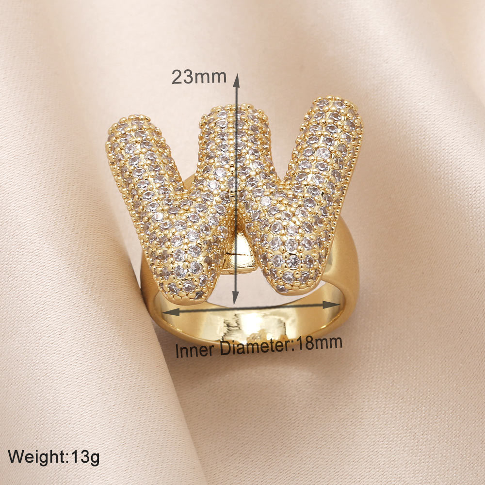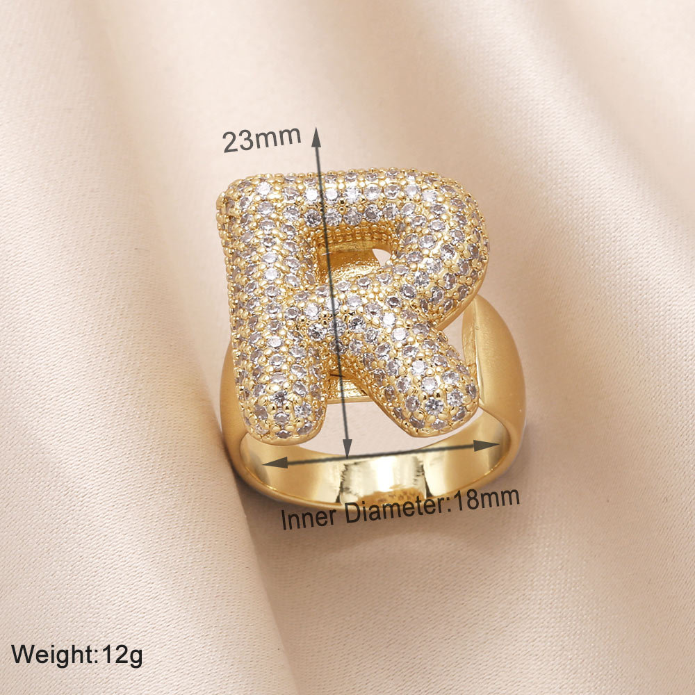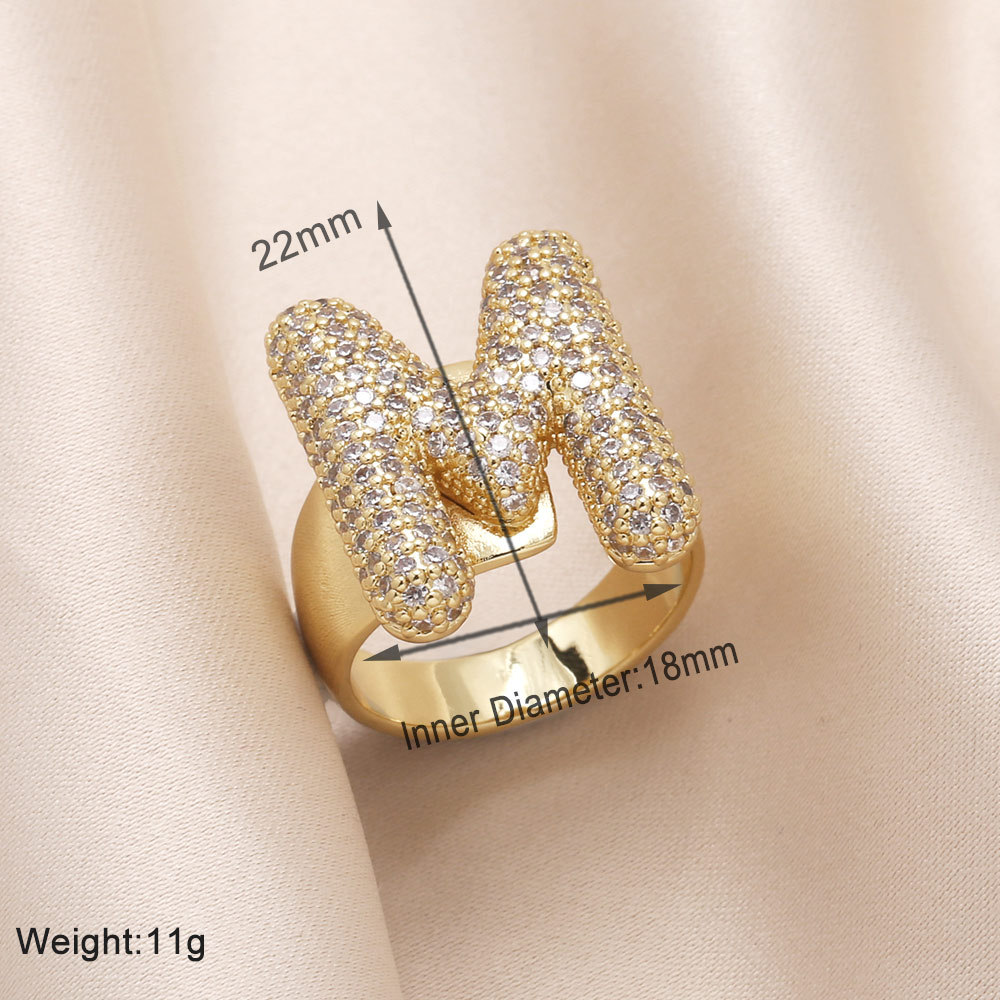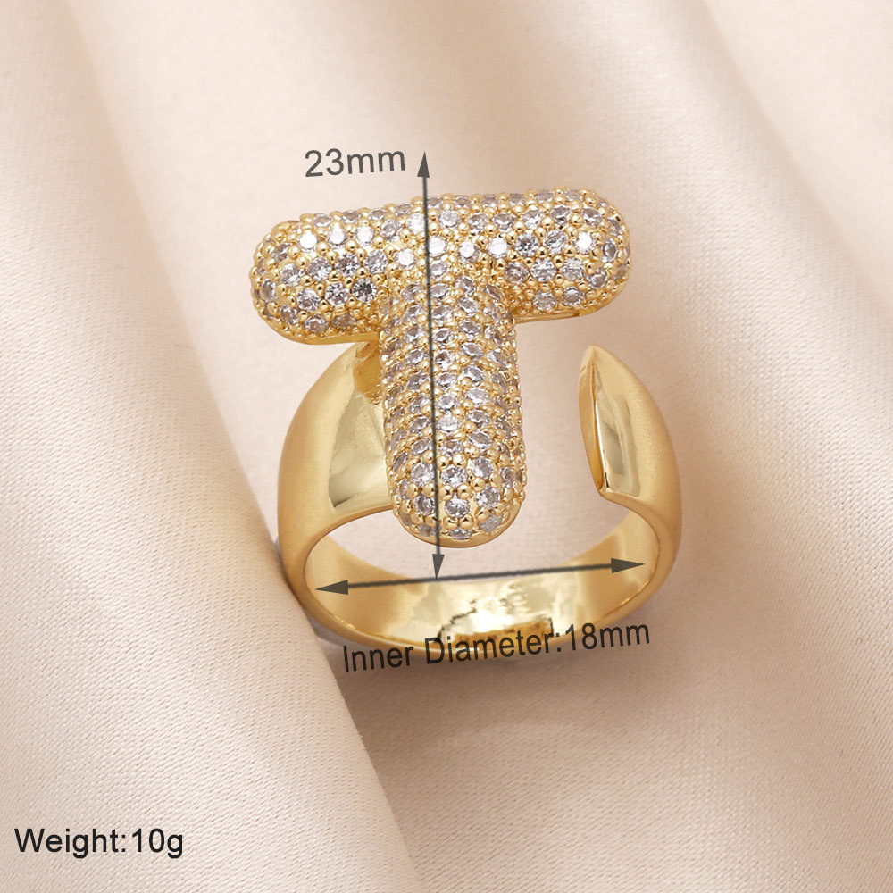 AS jewelry 26 English letters ring female inlaid with zircon gold-plated open ring rin50