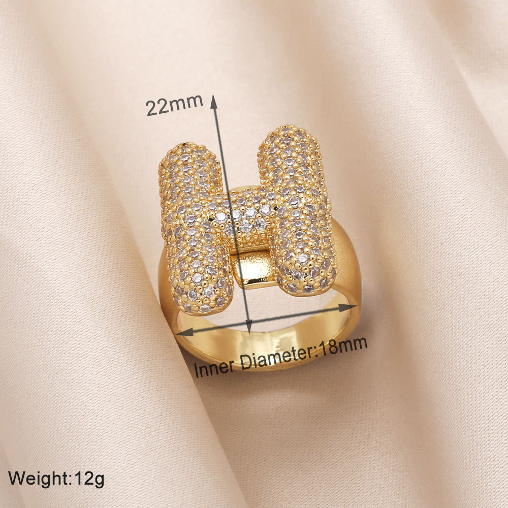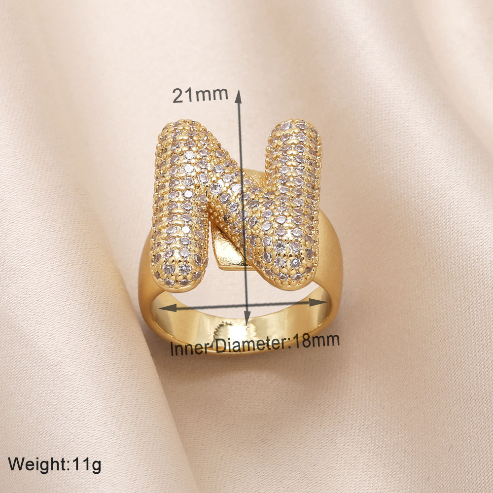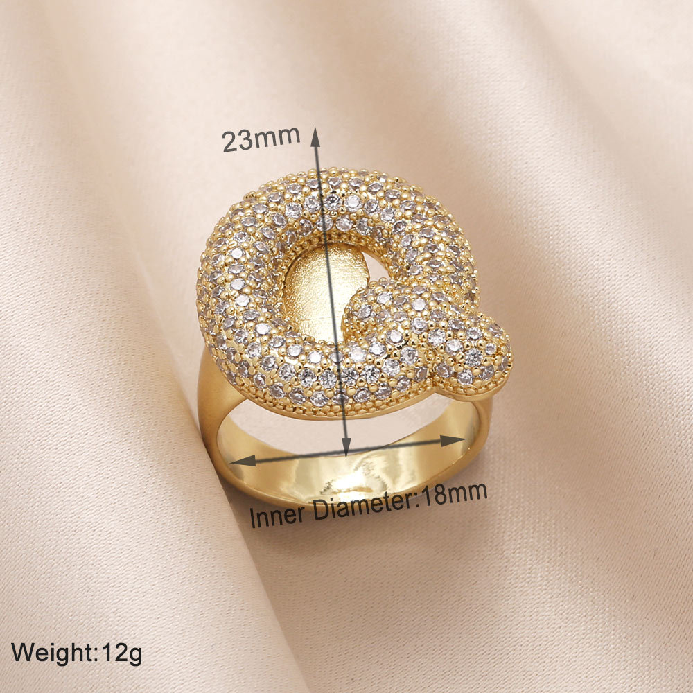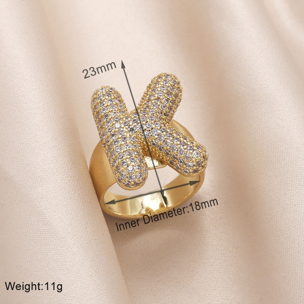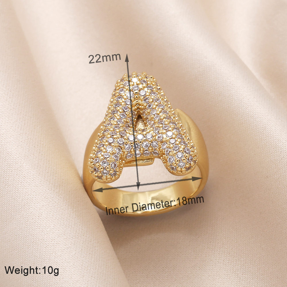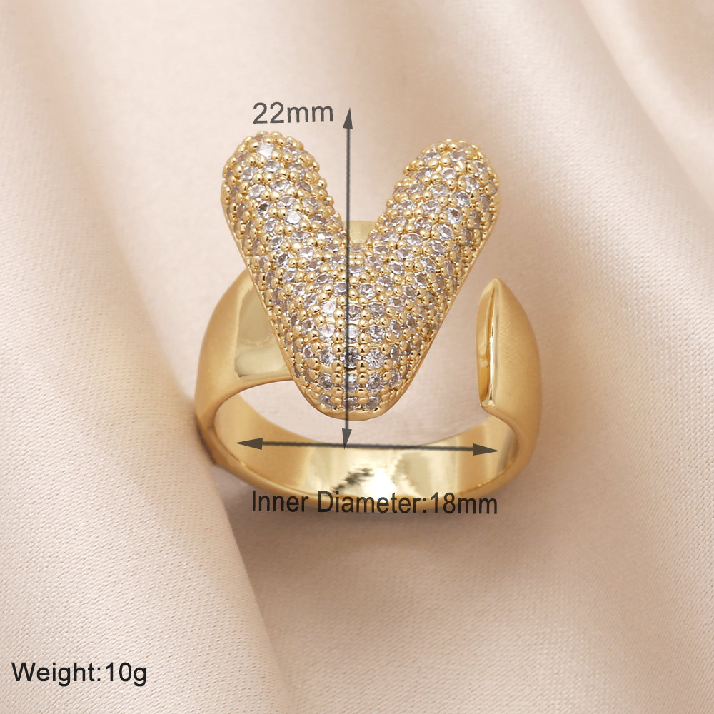 AS jewelry 26 English letters ring female inlaid with zircon gold-plated open ring rin50
