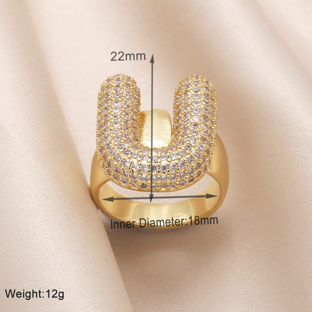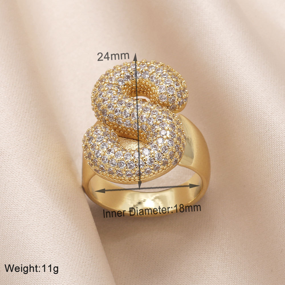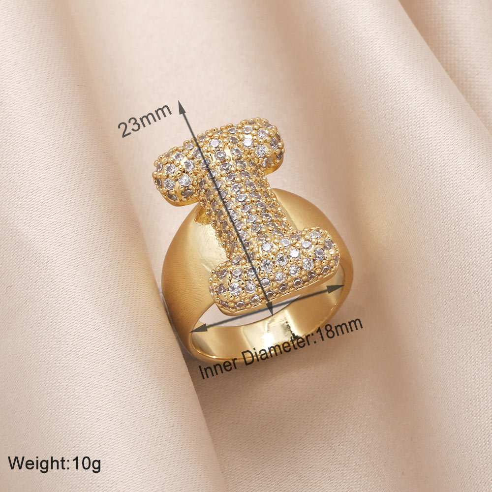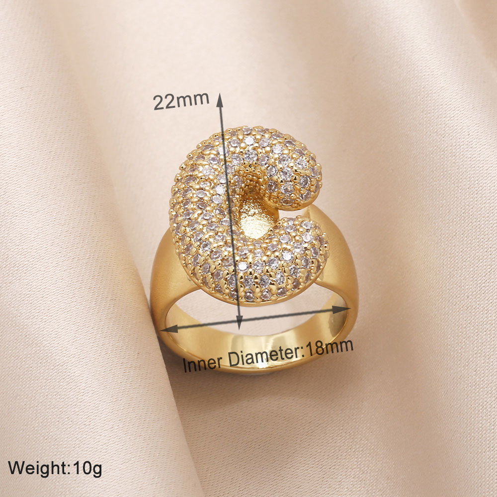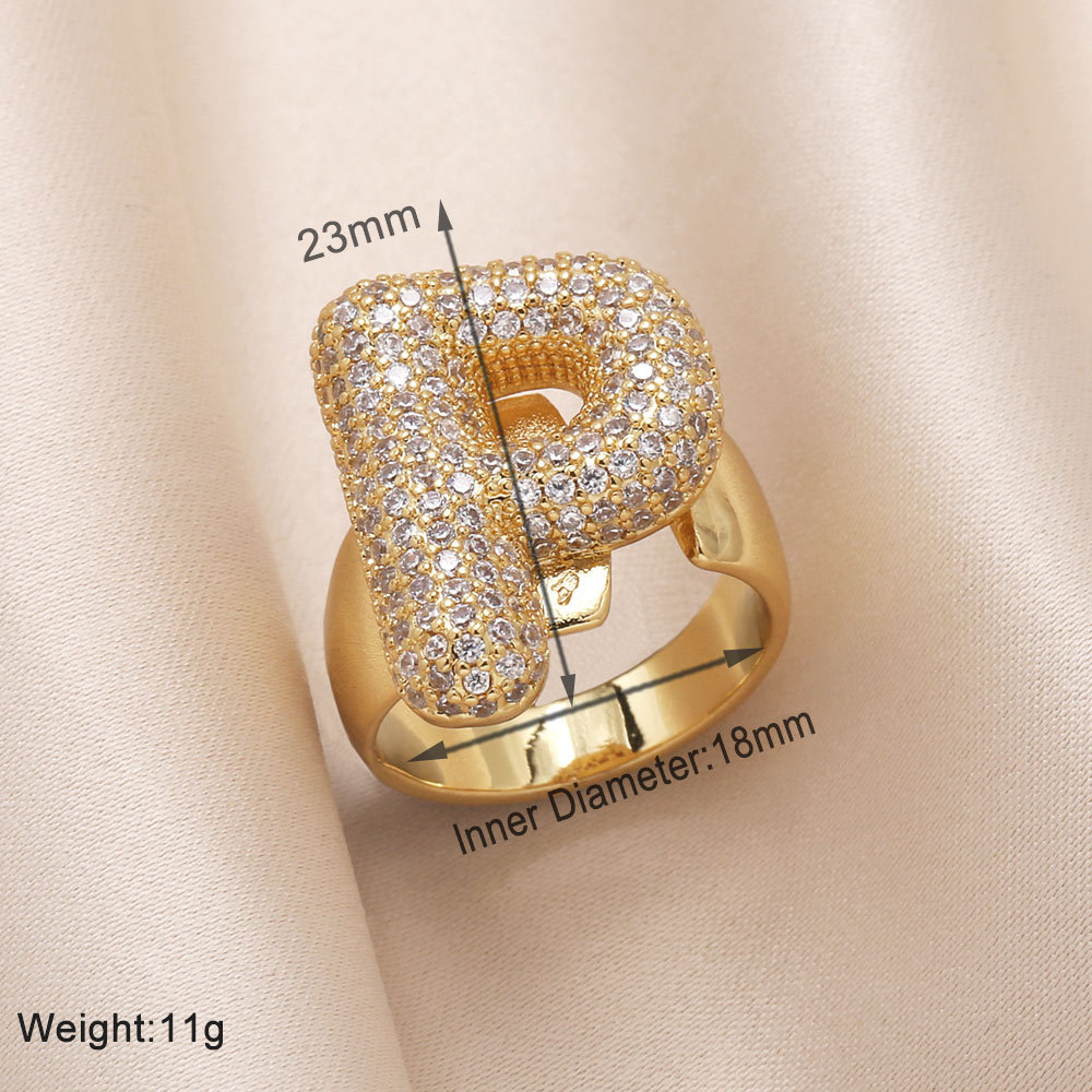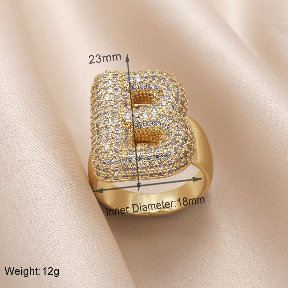 AS jewelry 26 English letters ring female inlaid with zircon gold-plated open ring rin50
