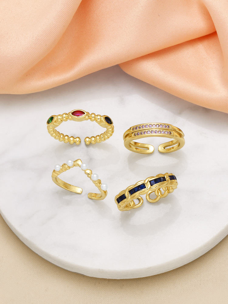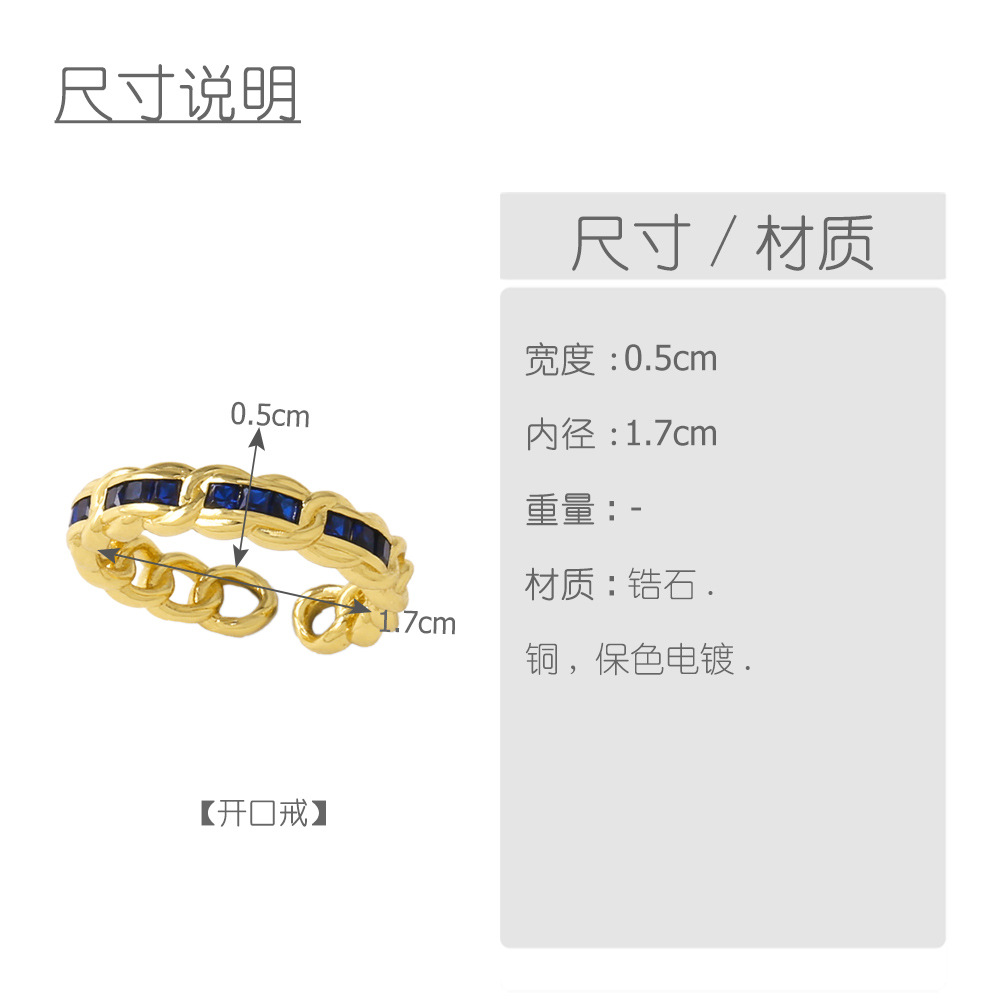 AS jewelry all-match colored zircon ring female gold-plated round open ring rik40