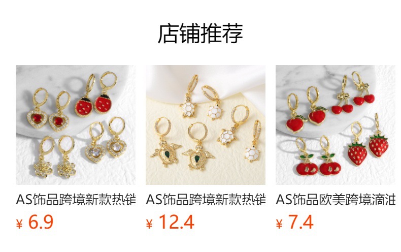 AS jewelry hot selling copper plated real gold oil drop fruit strawberry mushroom earrings earrings ers75