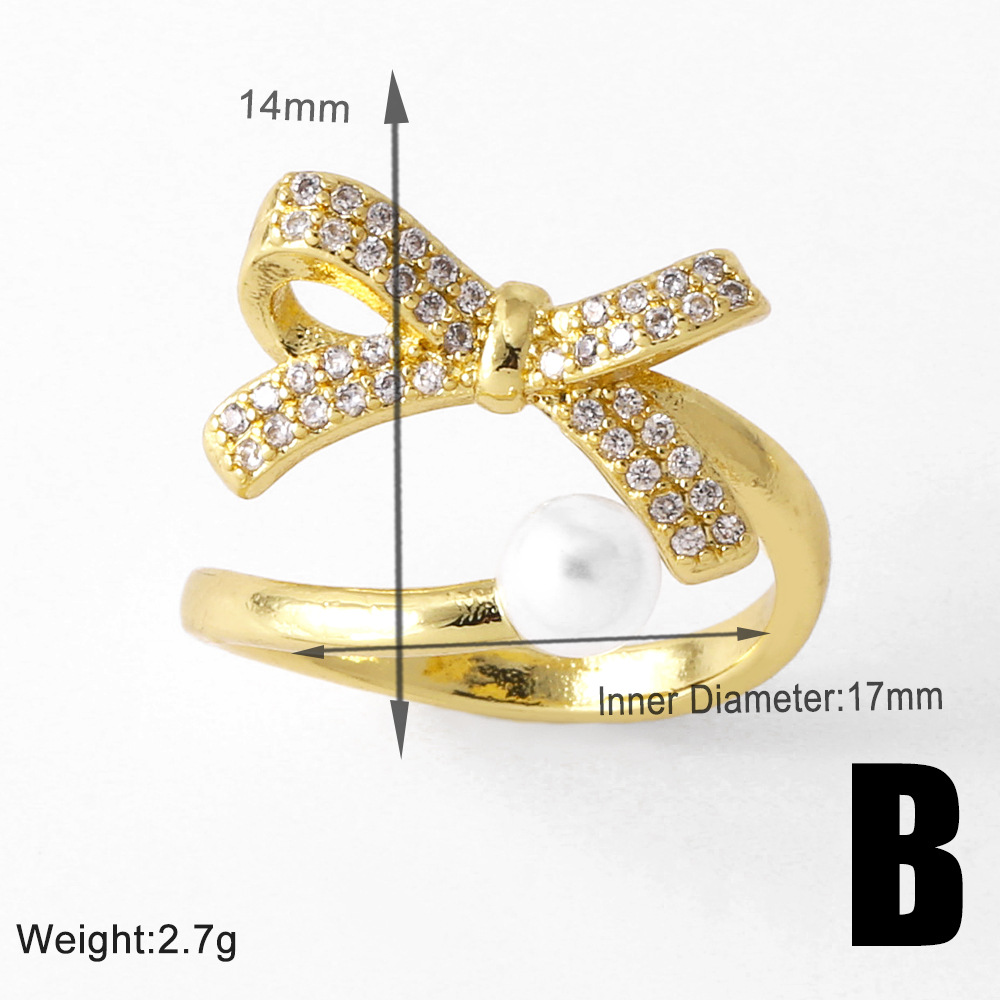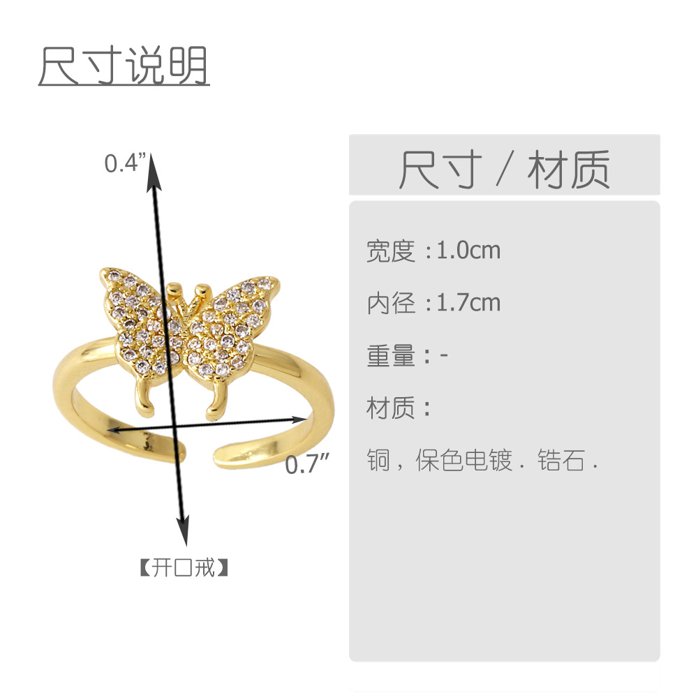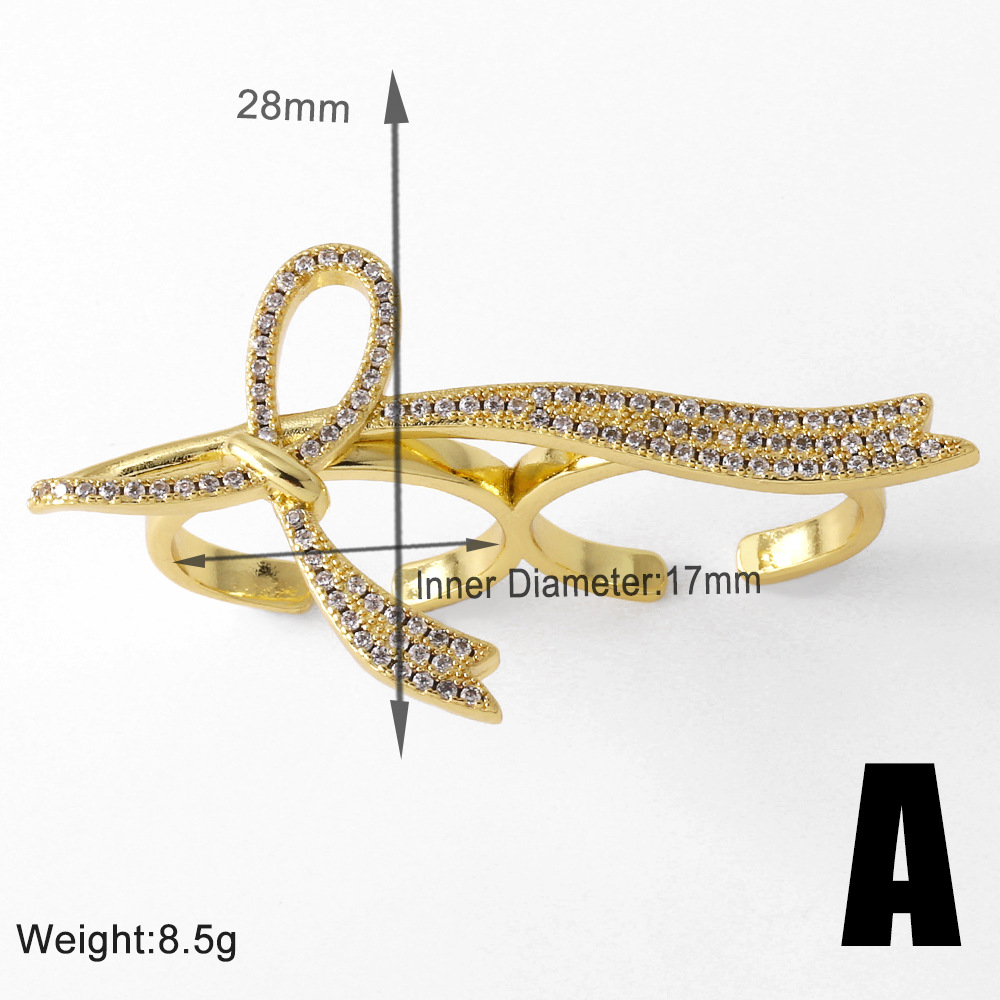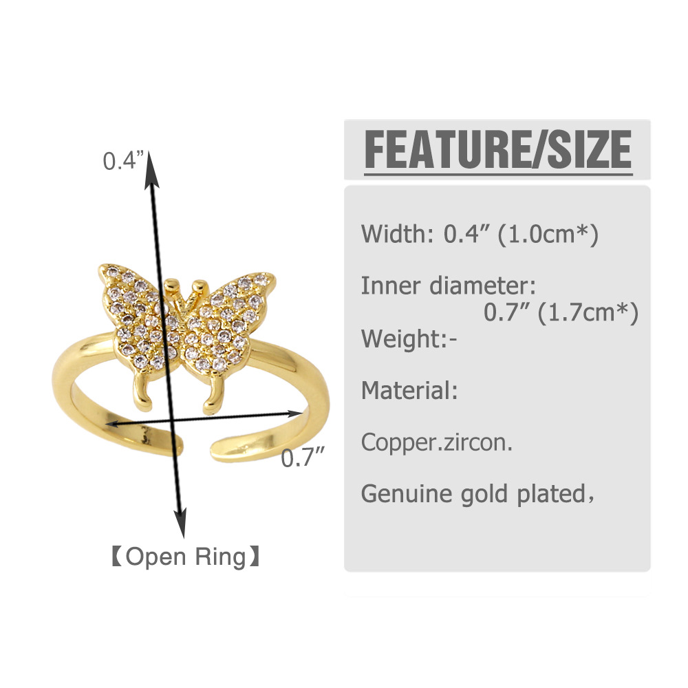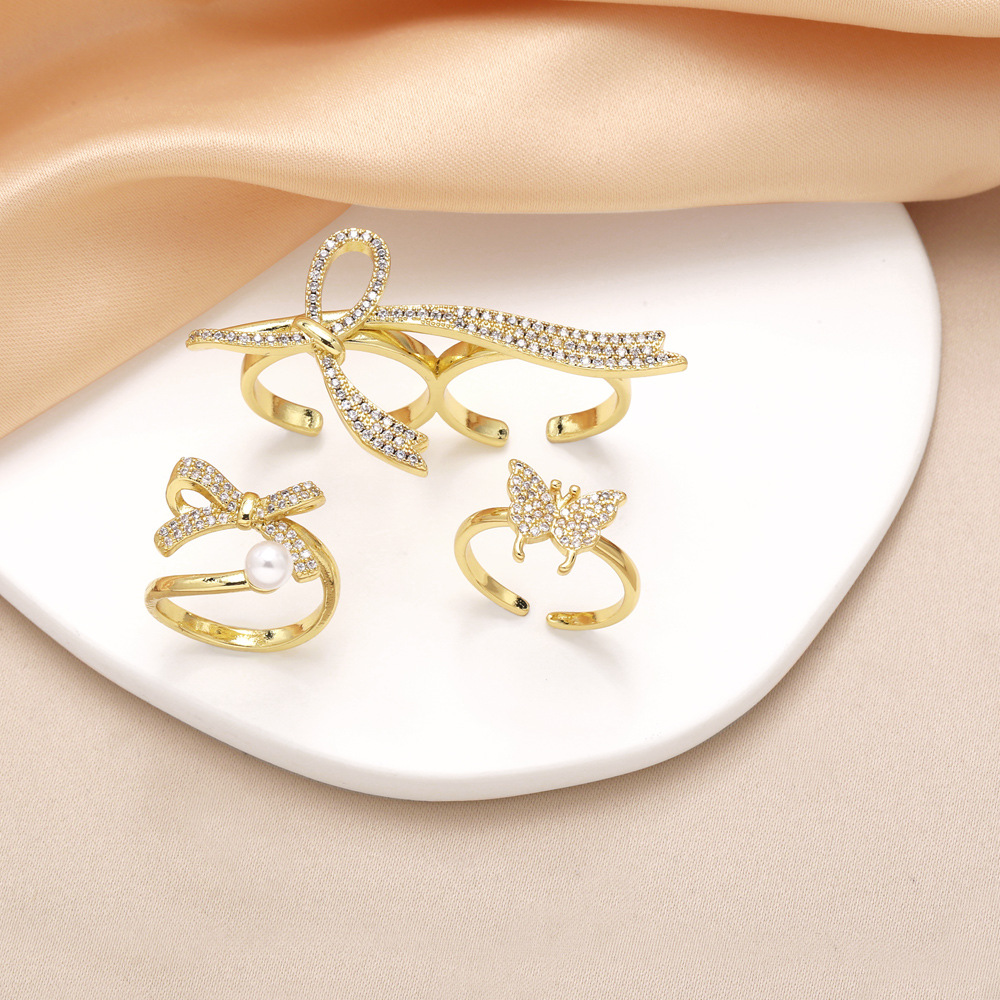 AS jewelry bow ring copper plated real gold inlaid zircon butterfly open ring rim93