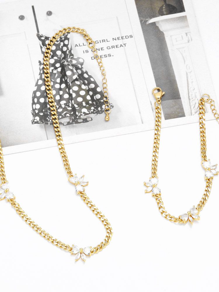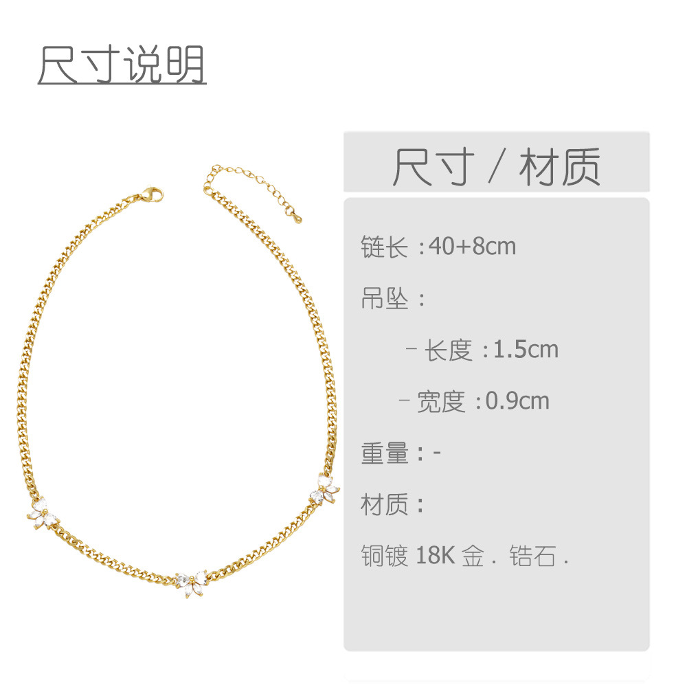 AS jewelry butterfly necklace copper plated real gold inlaid zircon butterfly bracelet clavicle chain nks95