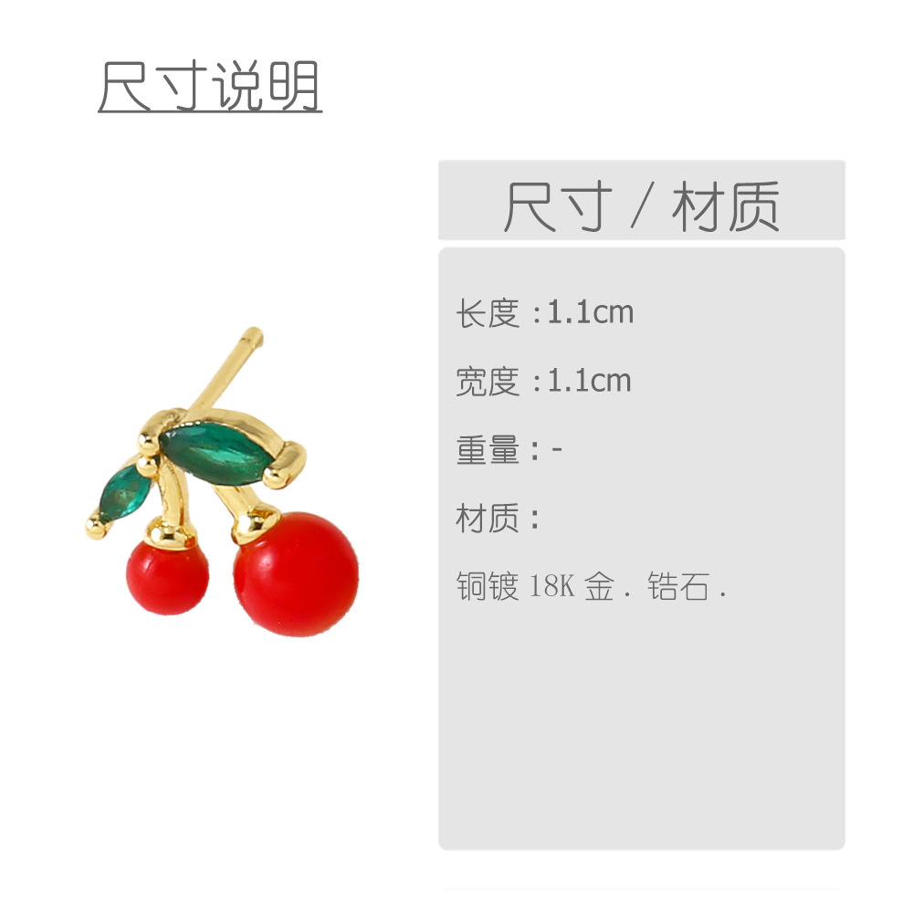 AS jewelry copper plated 18k gold fruit cherry inlaid zircon earrings earrings erq30 ring