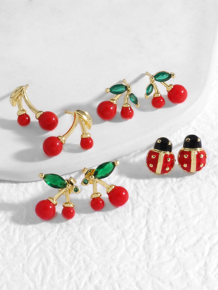 AS jewelry European and American new hot selling fruit cherry copper plated 18k gold earrings earrings female ers28 ring