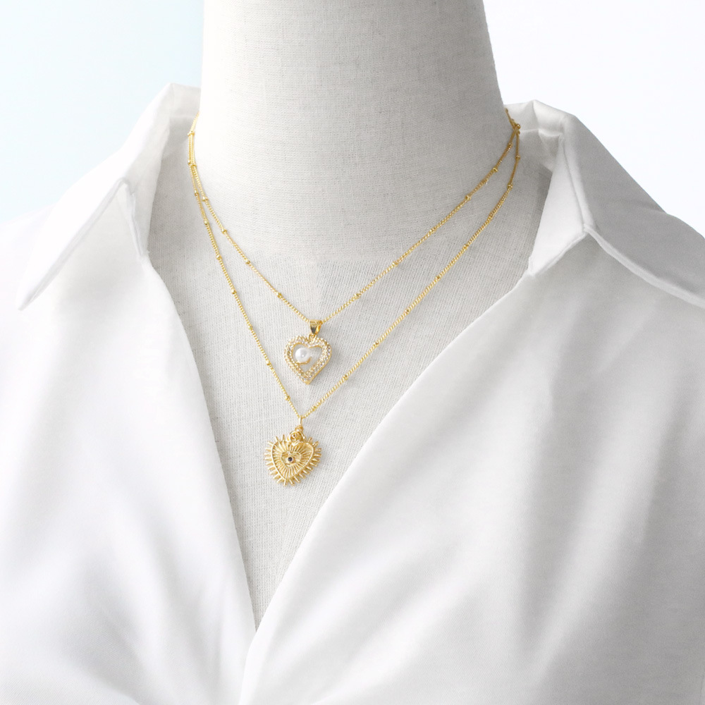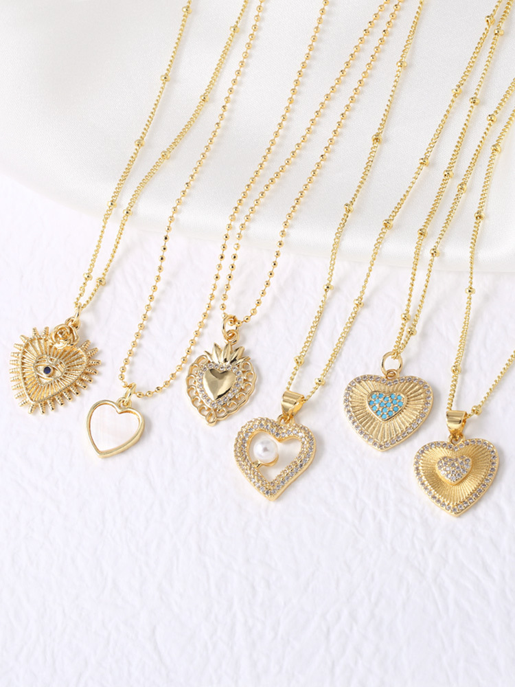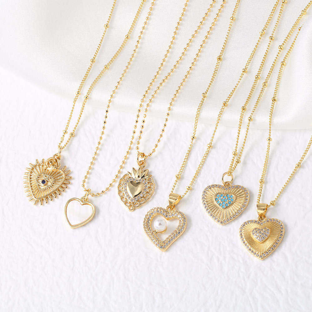 AS jewelry copper plated 18k gold pearl love heart pendant necklace clavicle chain female nka020