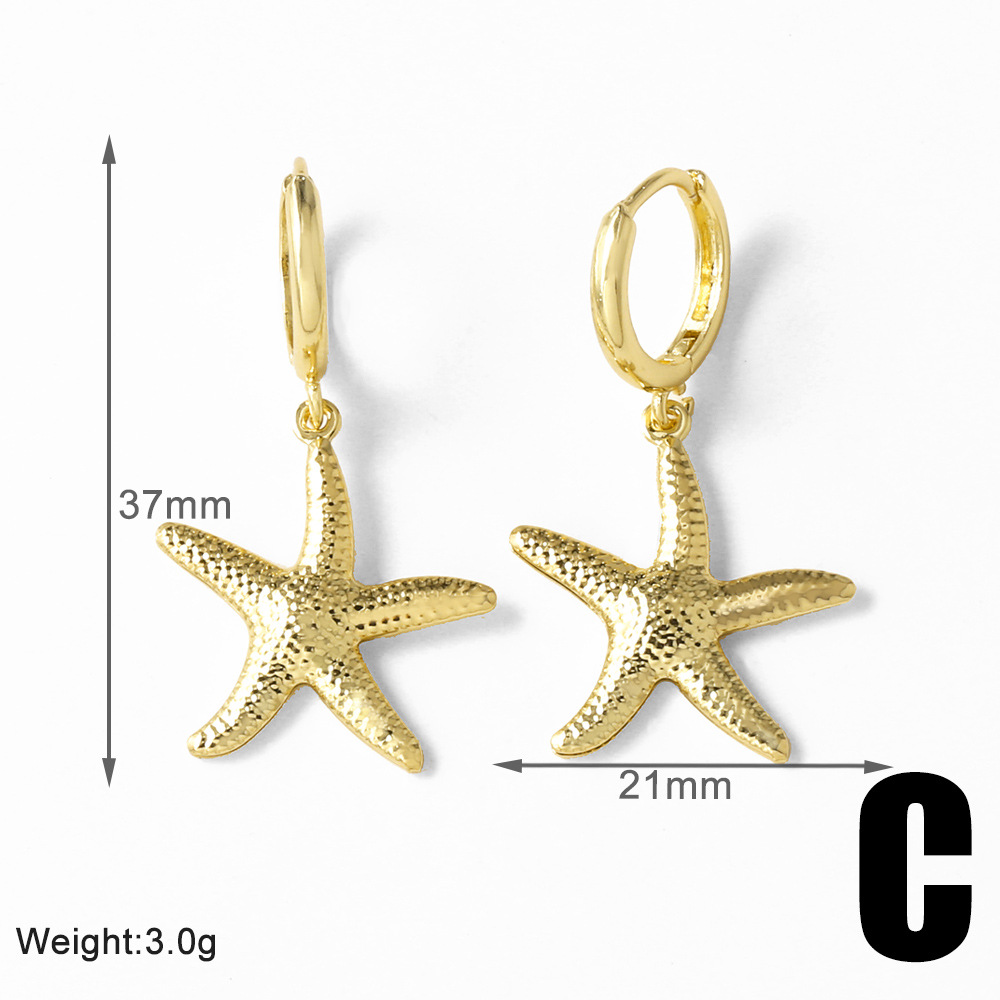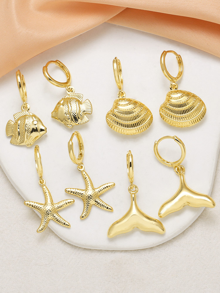 AS jewelry copper plated 18k gold starfish shell fishtail pendant earrings earrings female err53