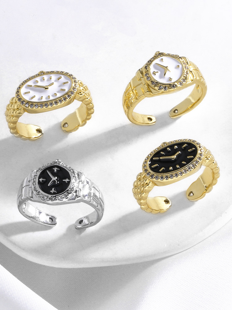 AS jewelry copper plated 18k gold watch clock open ring ring rip39 ring