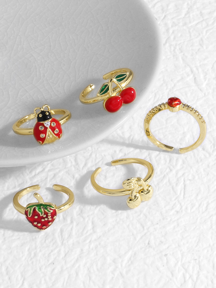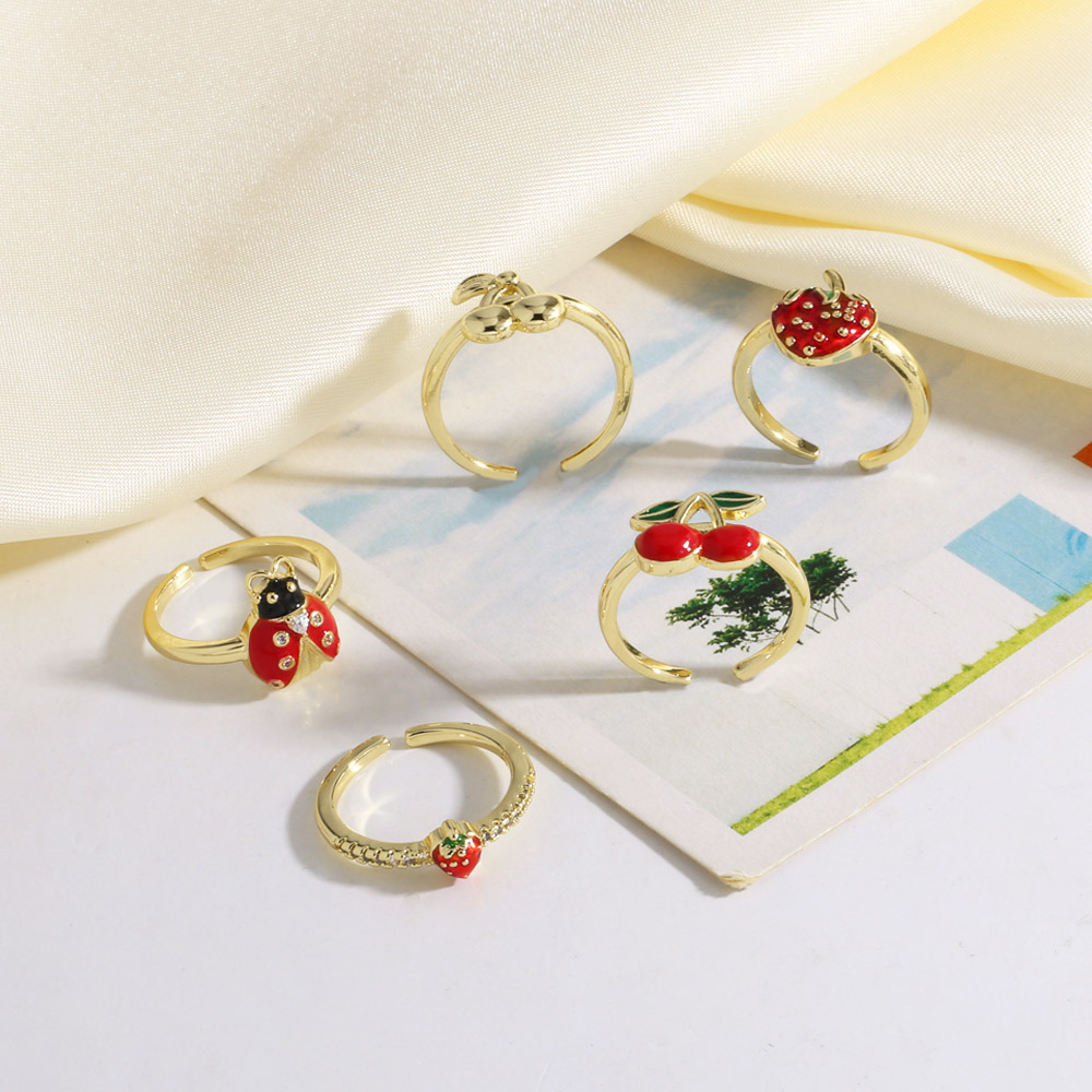 AS jewelry copper plated real gold dripping fruit cherry adjustable ring ring riq57 ring