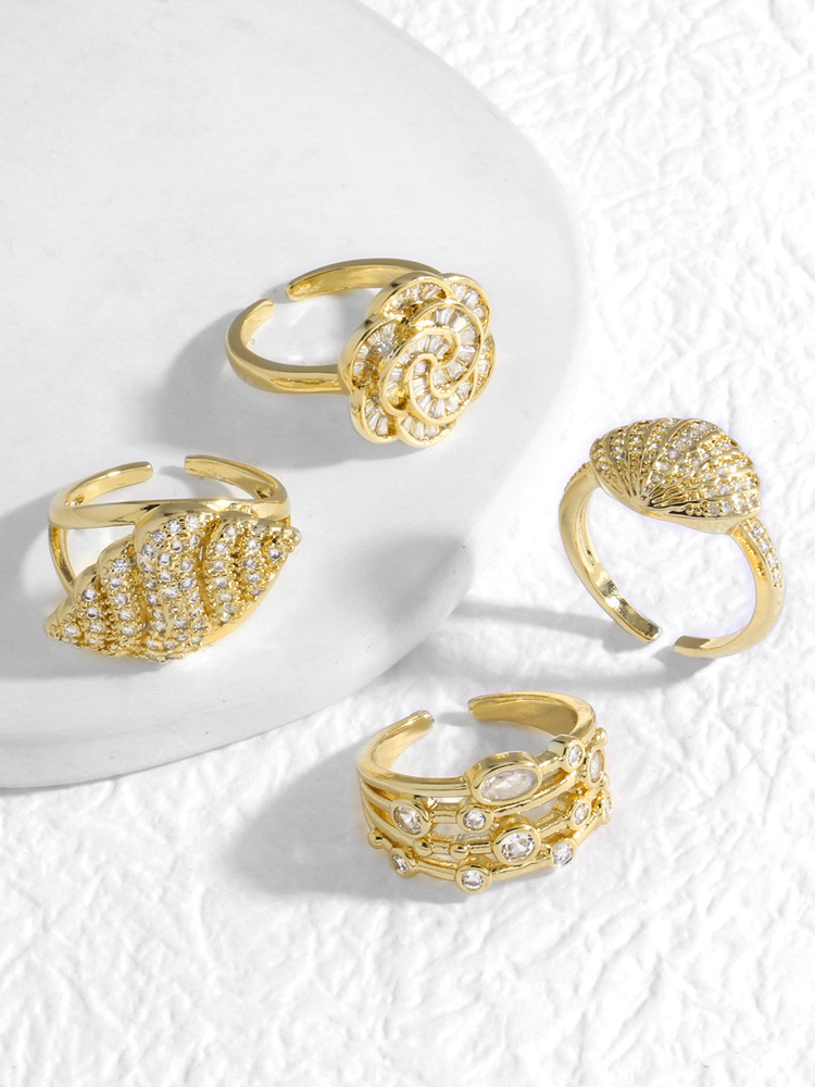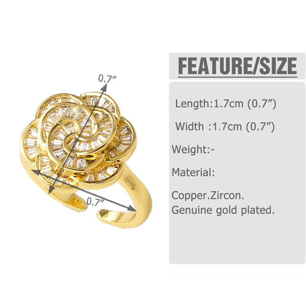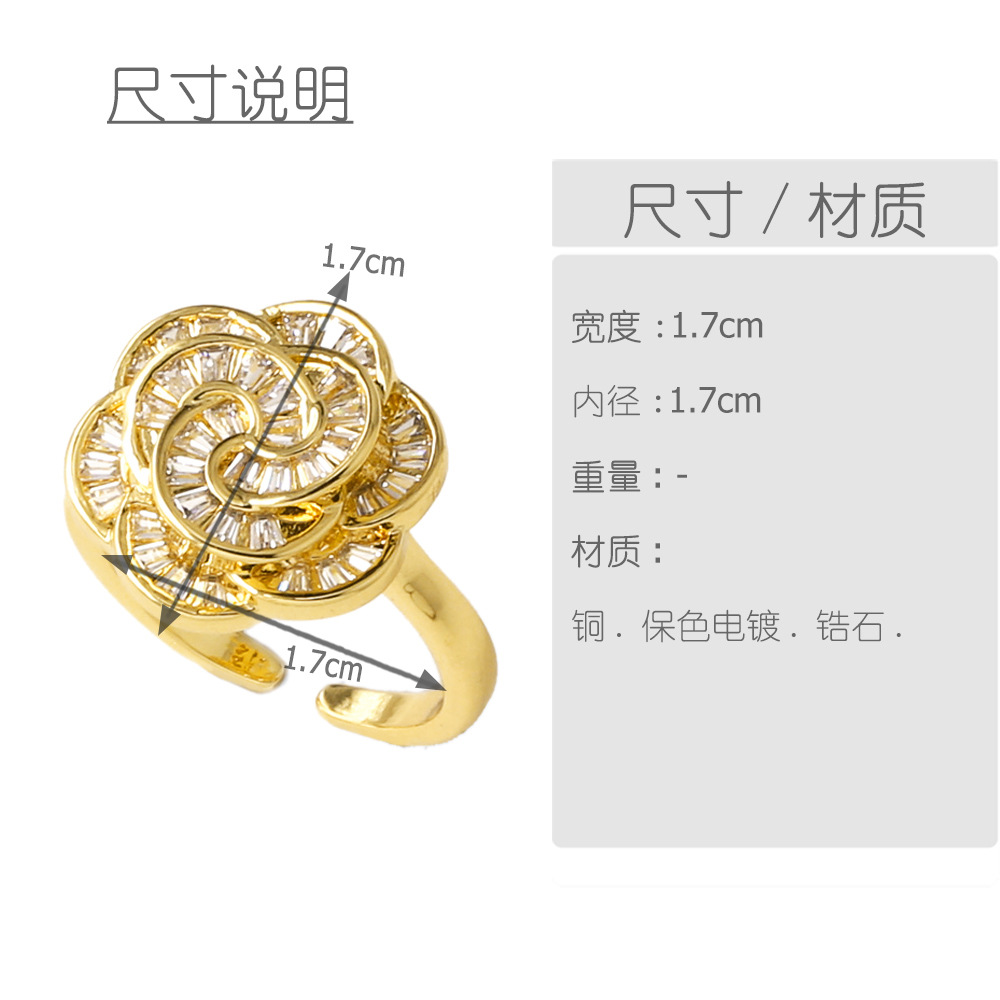 AS jewelry copper plated real gold flower shell full of zircon open ring ring rij49 ring