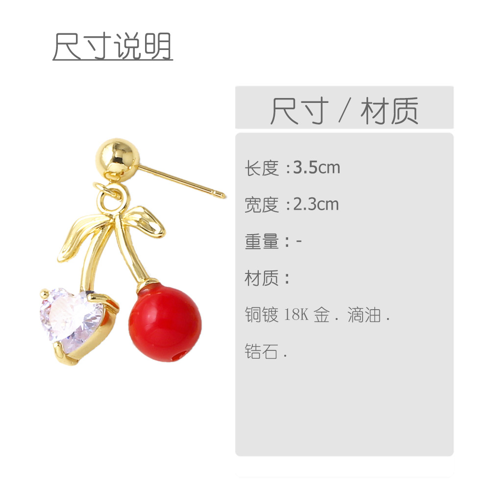AS jewelry European and American hot selling niche design zircon oil drop fruit cherry earrings earrings earrings erq84