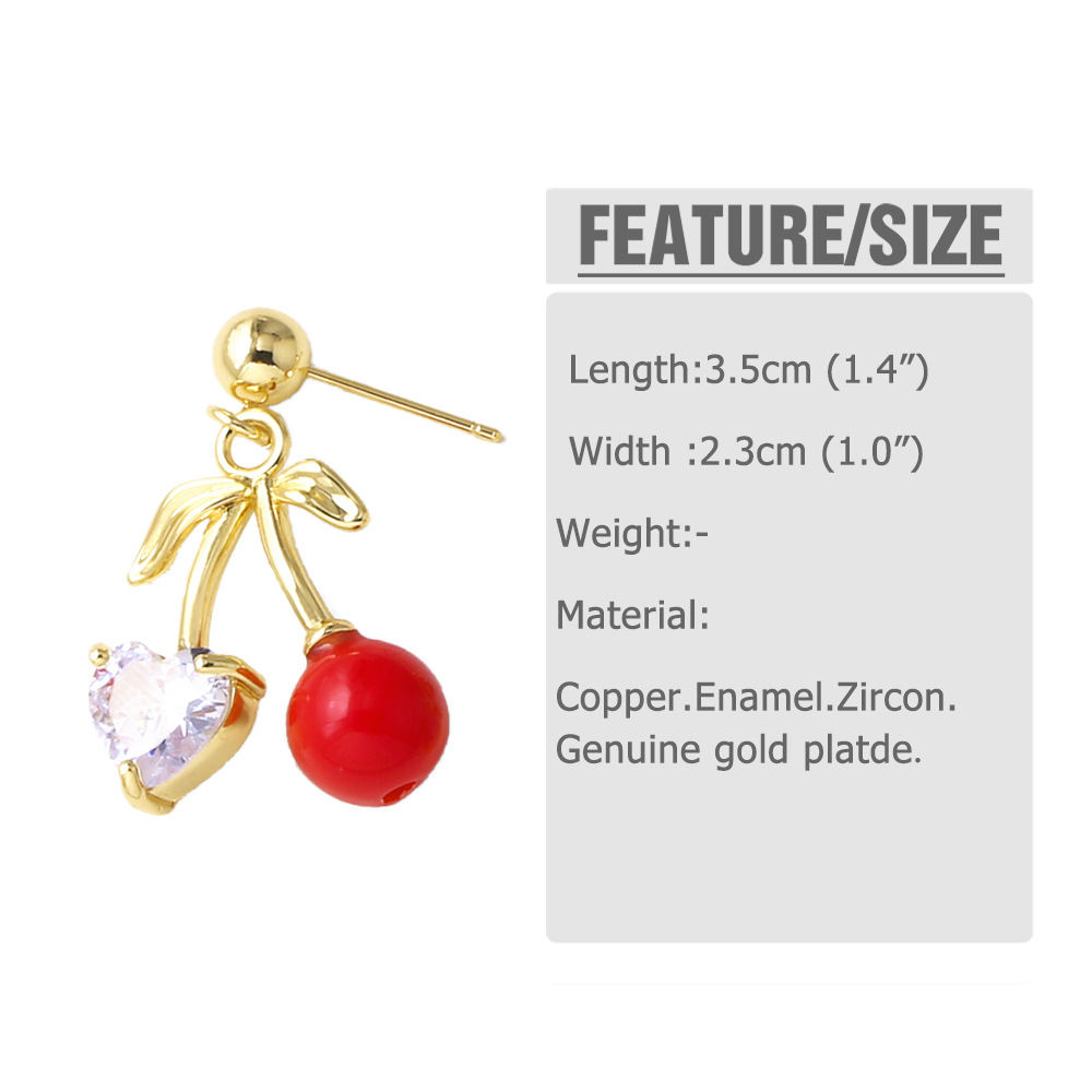 AS jewelry European and American new hot selling fruit cherry copper plated 18k gold earrings earrings female ers28 ring
