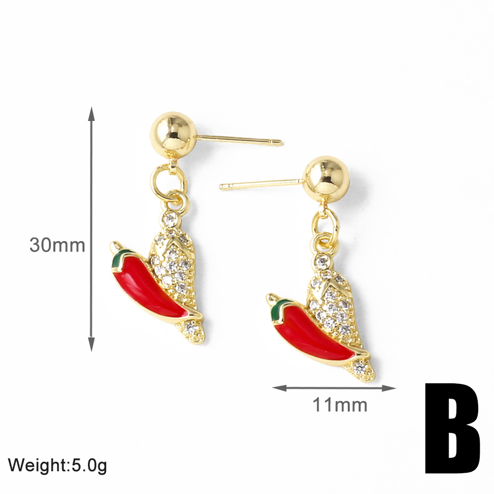 AS jewelry hot selling copper plated real gold oil drop fruit strawberry mushroom earrings earrings ers75