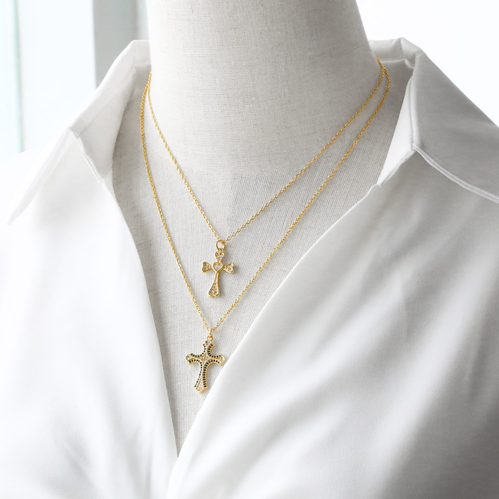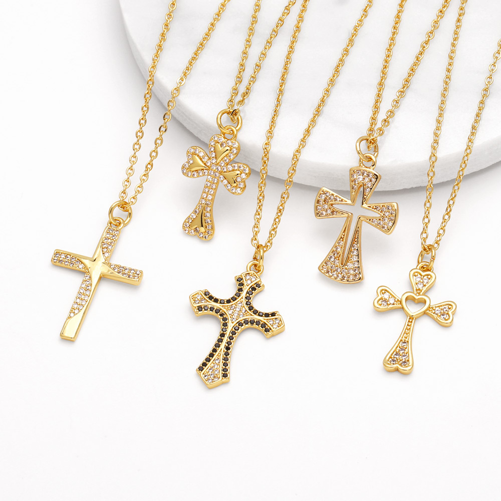 AS jewelry cross pendant necklace gold-plated inlaid colored zircon love clavicle chain nkb113