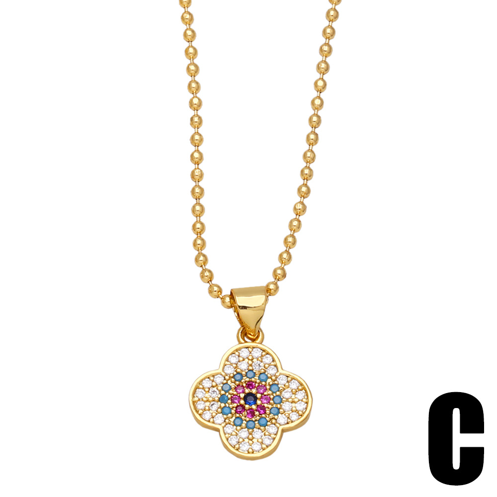 AS jewelry devil's eye four-leaf clover necklace European and American micro-inlaid colored diamond zircon geometric love clavicle chain nkb286