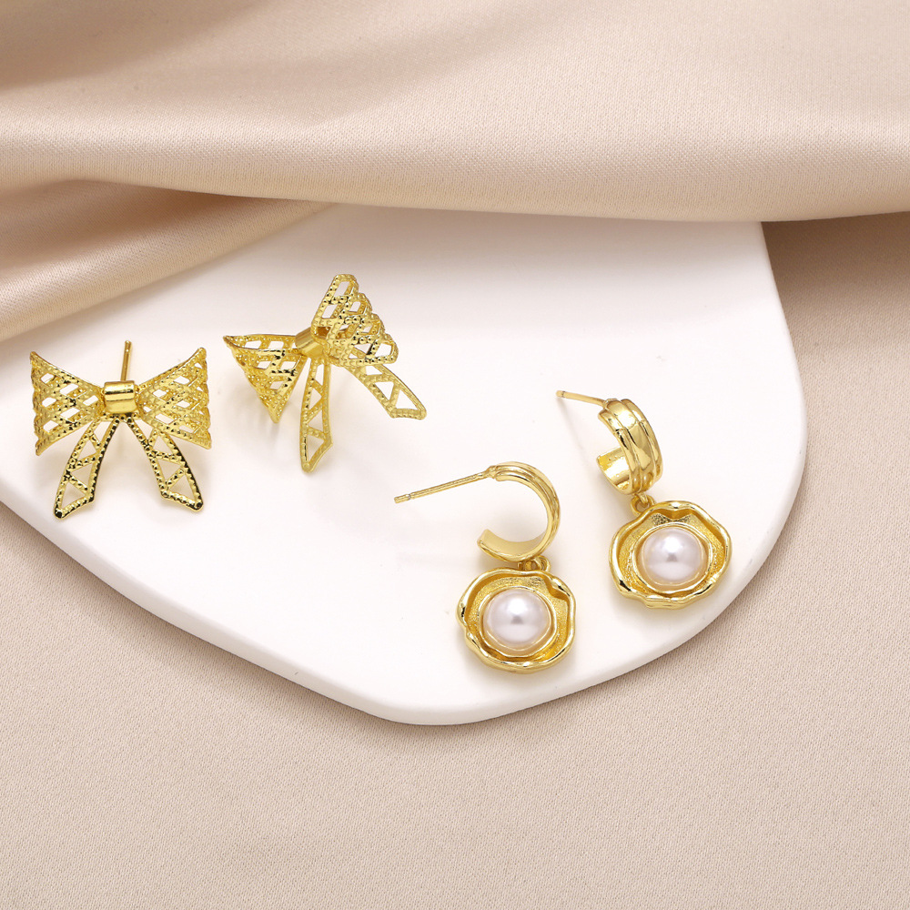 AS jewelry earrings bow earrings gold-plated zircon pearl earrings earrings erz49