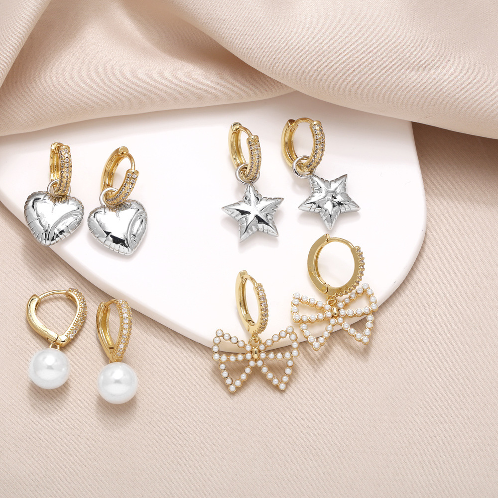 AS jewelry earrings European and American love earrings female pearl bow gold-plated star earrings era176