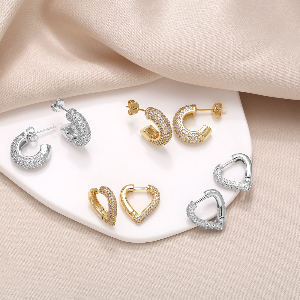AS jewelry earrings heart earrings gold-plated zircon inlaid C-shaped earrings earrings era189