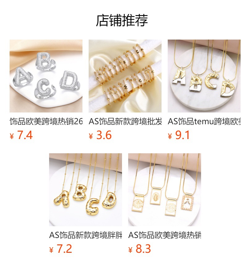 AS jewelry Europe and the United States hot selling 26 English small letter ring female copper plated 18k gold ring rih99ring