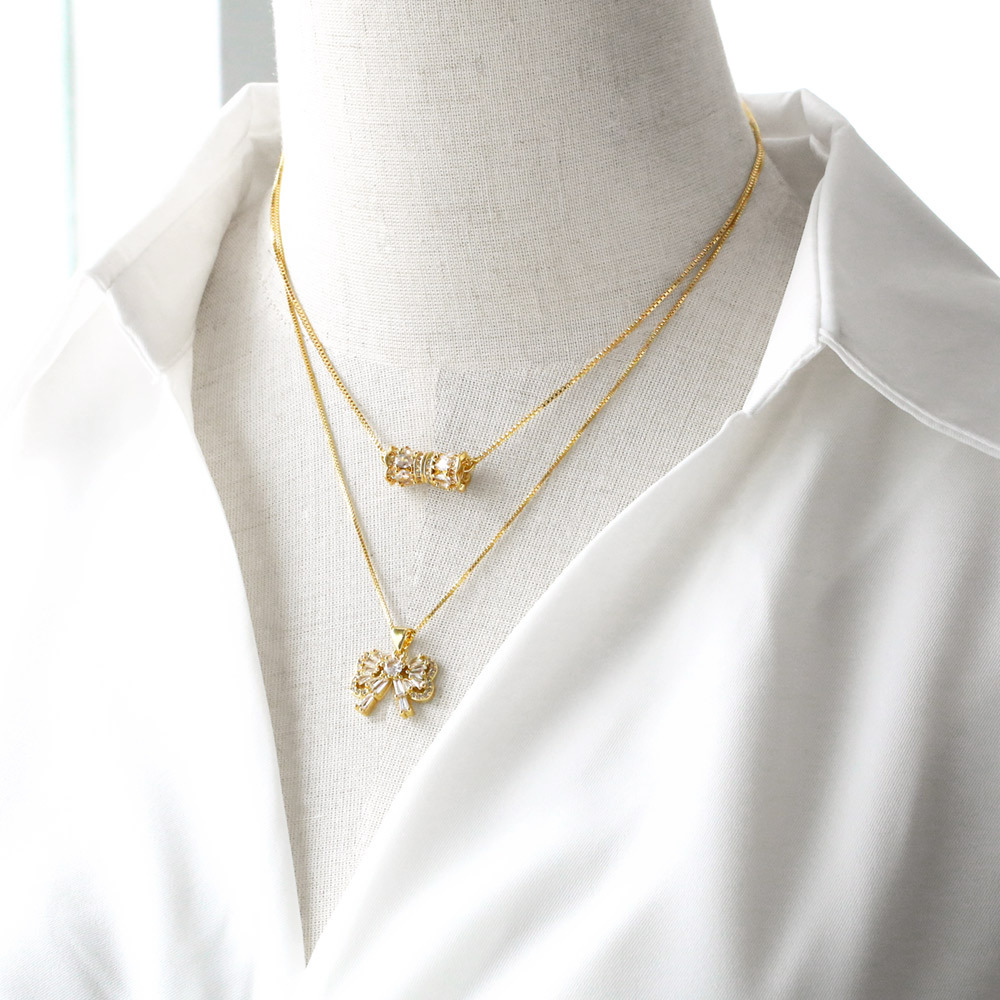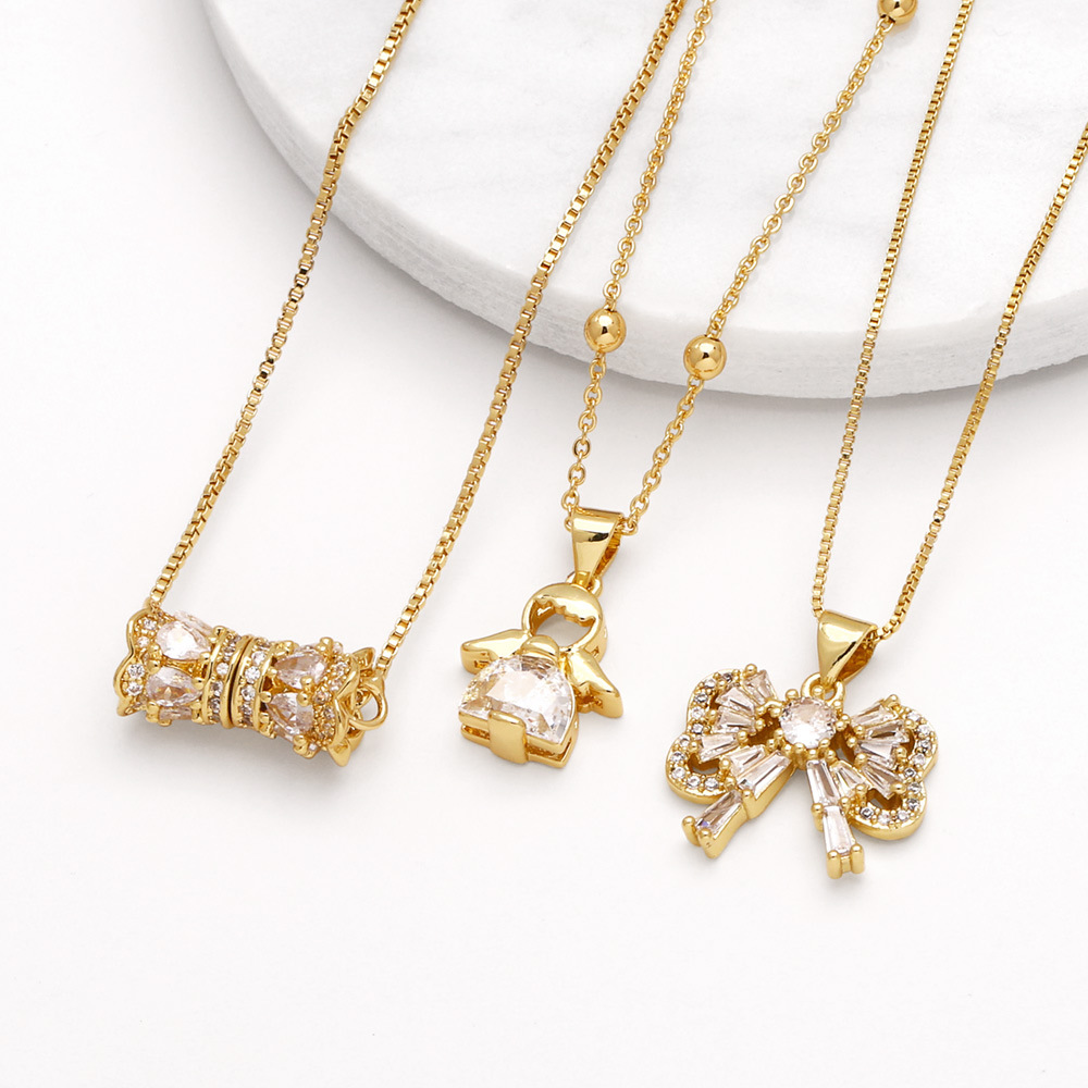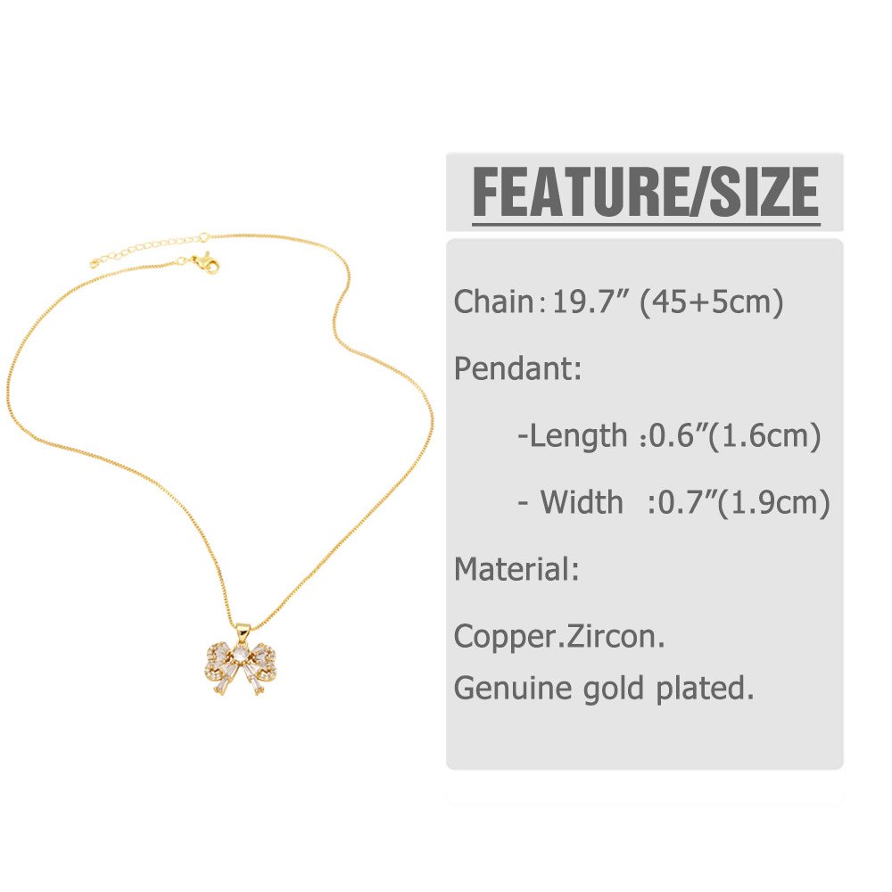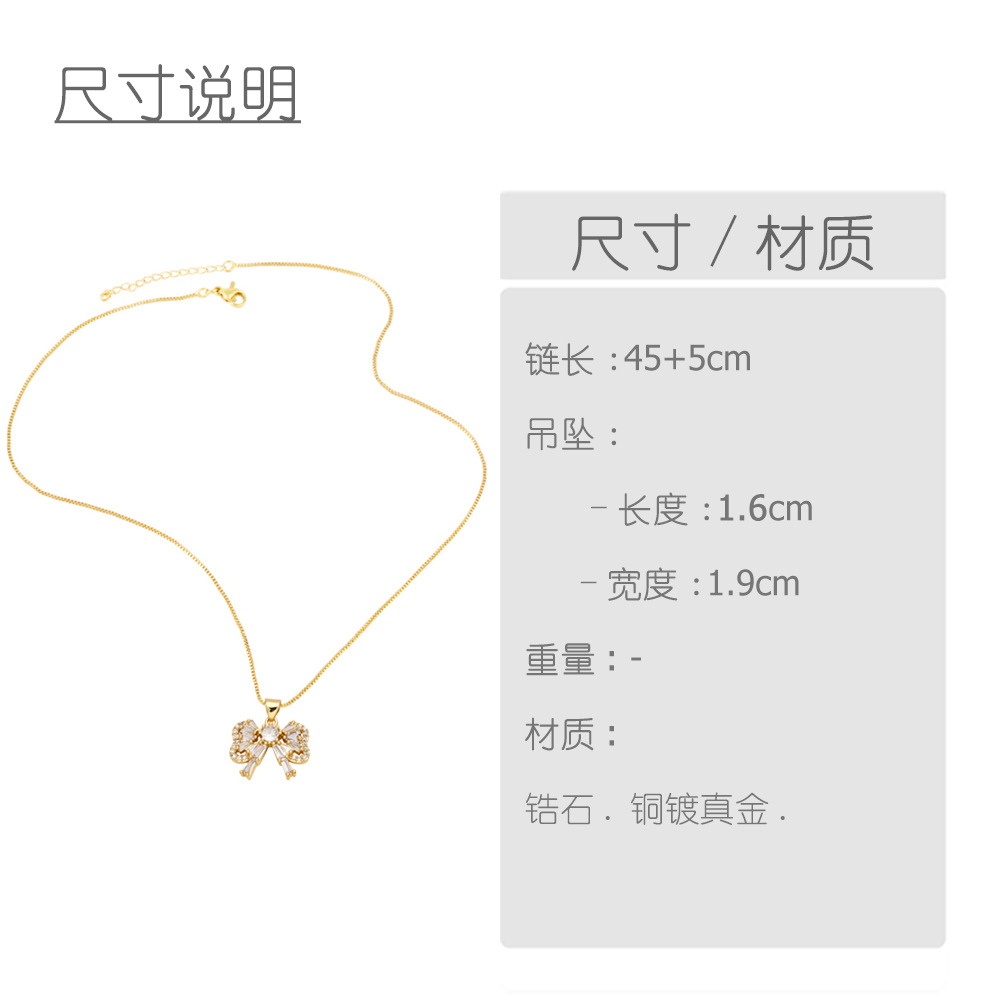 AS jewelry Europe and the United States hot selling bow pendant necklace women's full zircon gold-plated angel clavicle chain nkb013