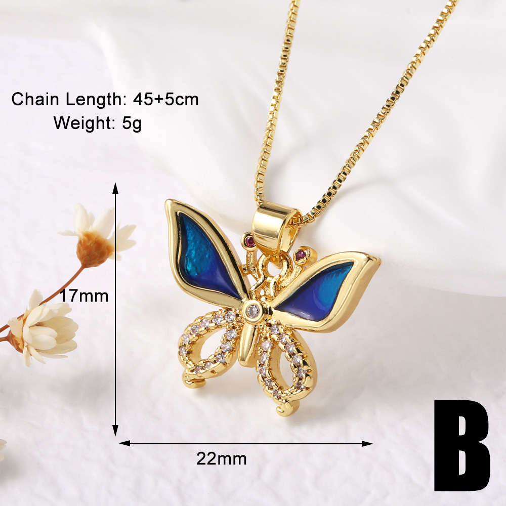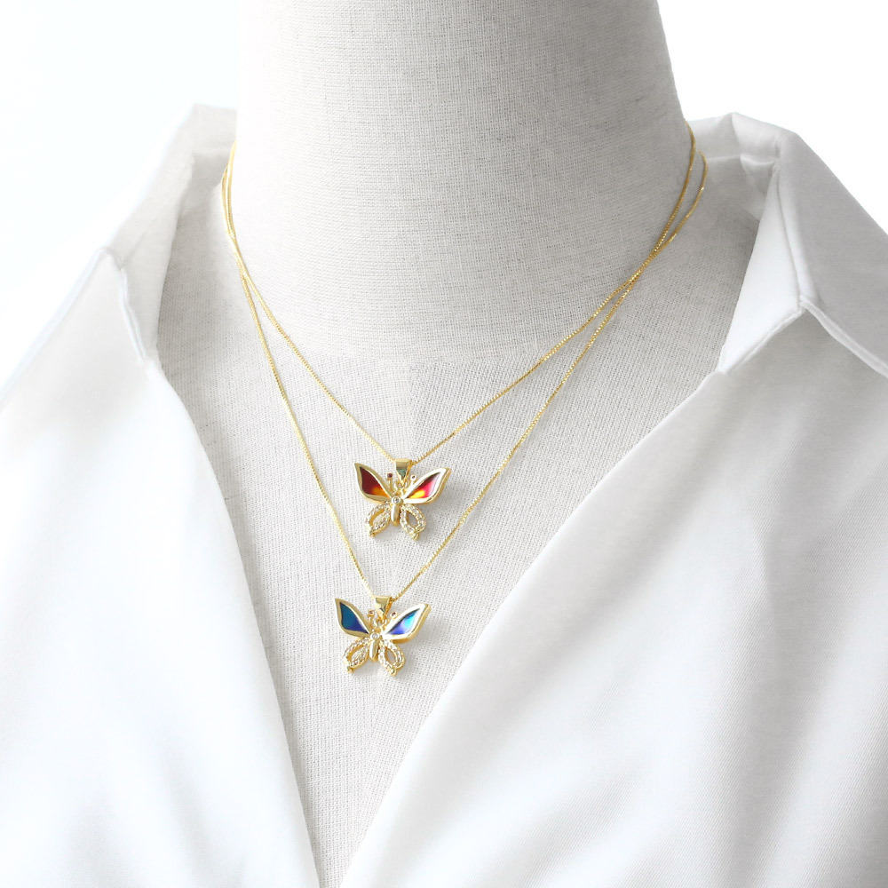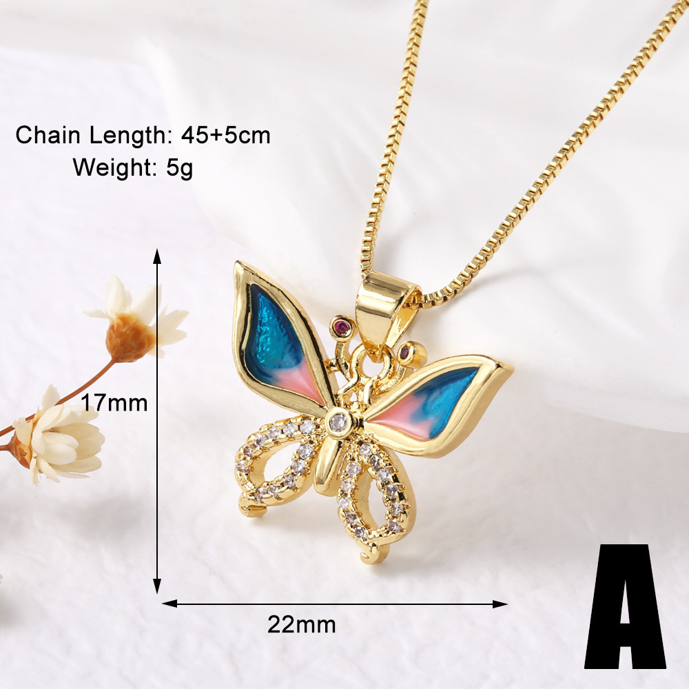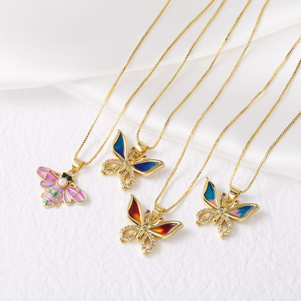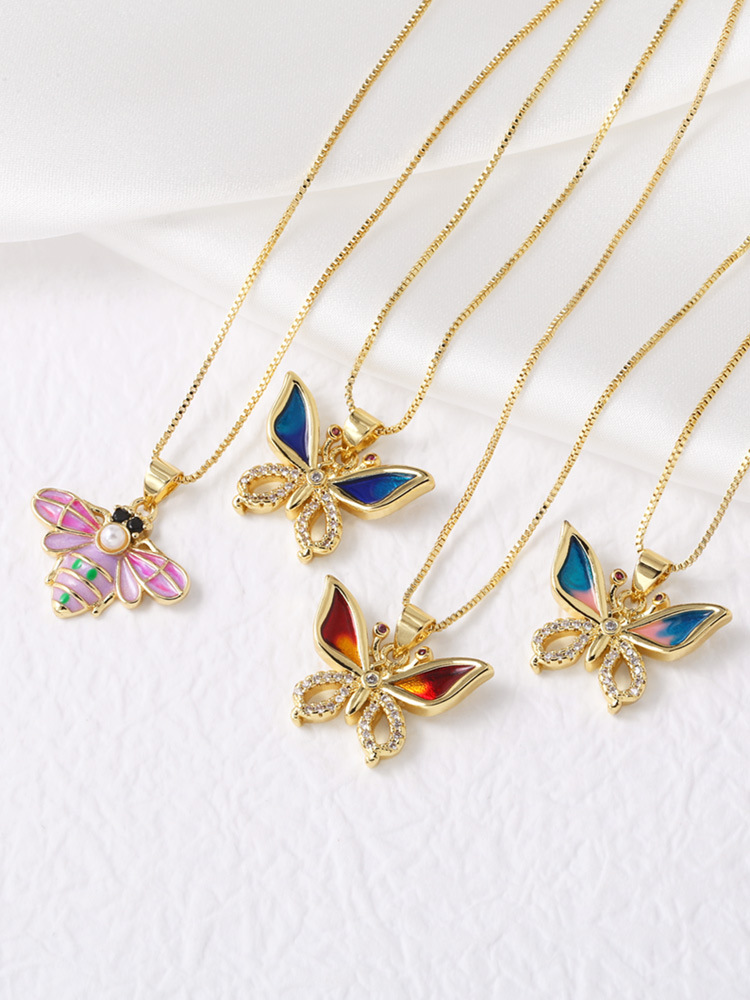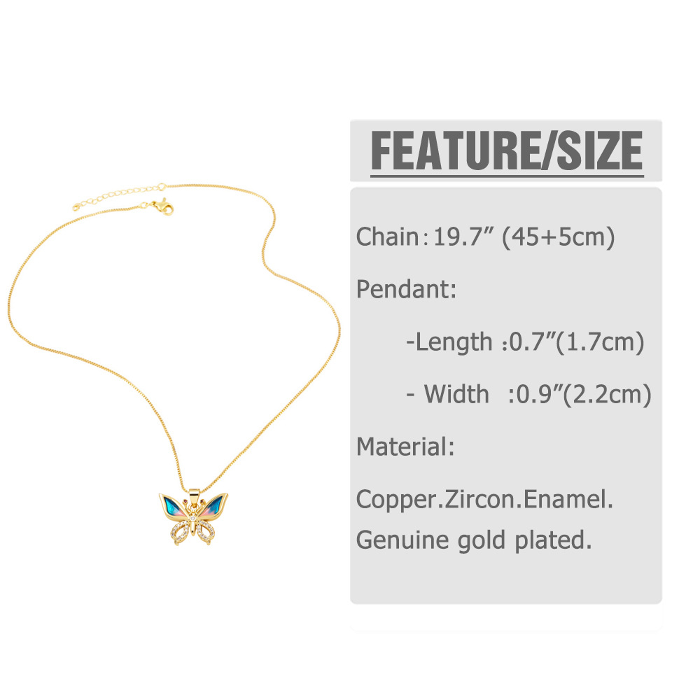AS jewelry Europe and the United States hot selling color dripping copper plated 18k gold butterfly pendant necklace clavicle chain nka088