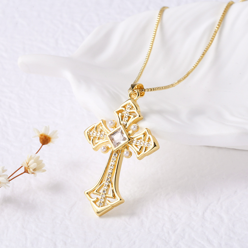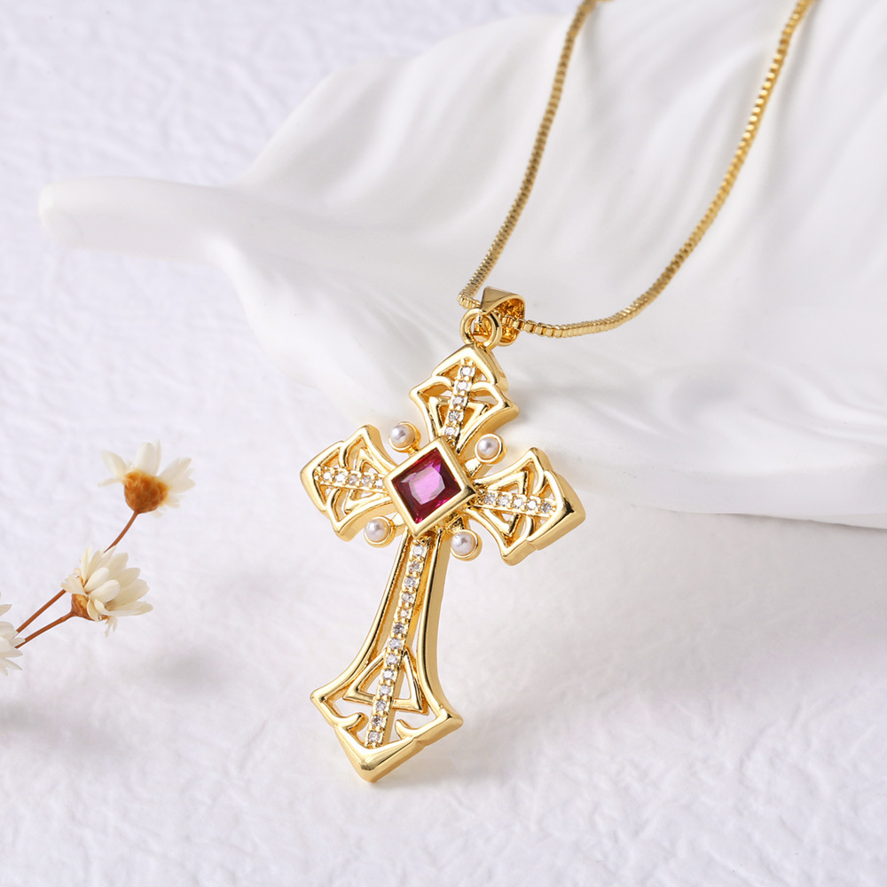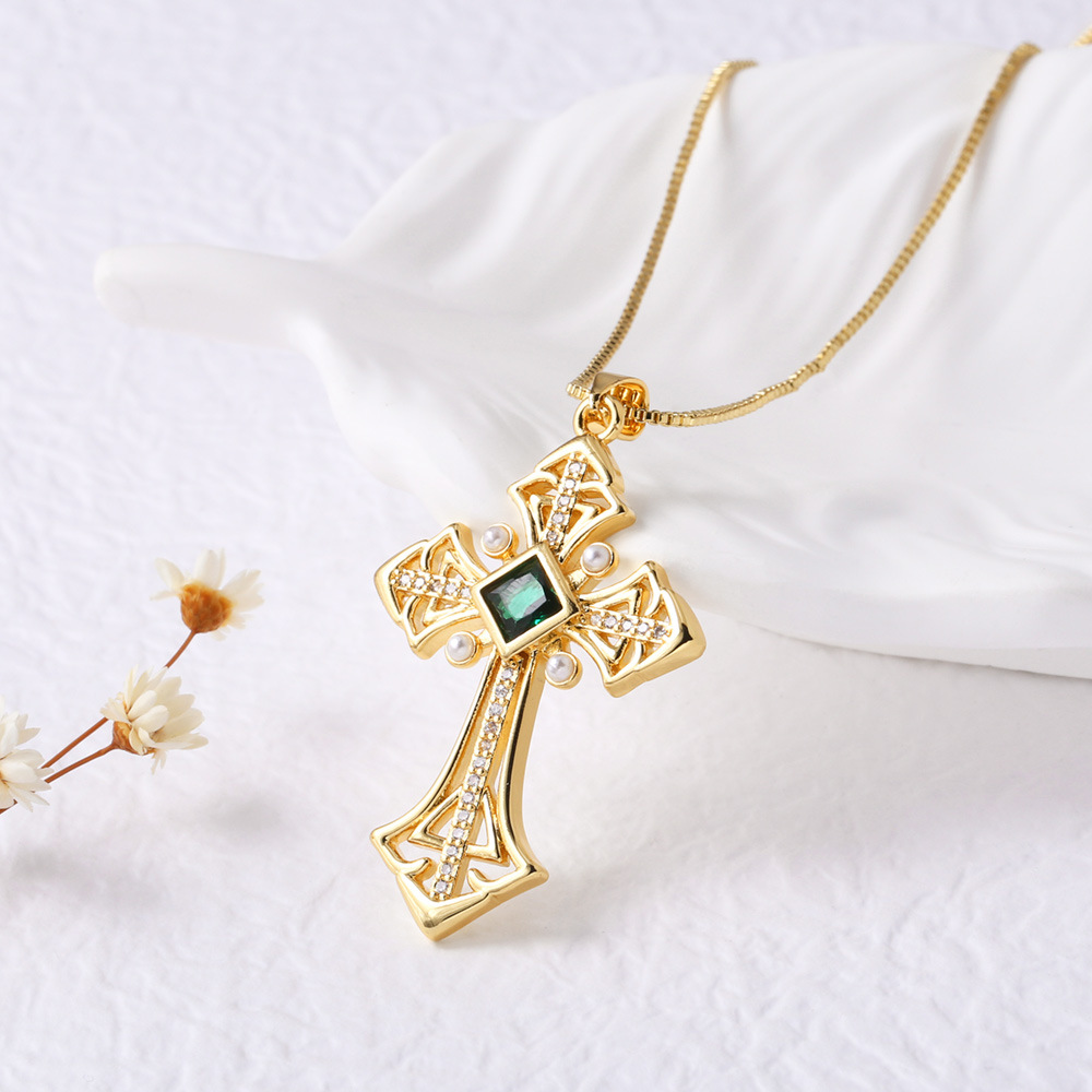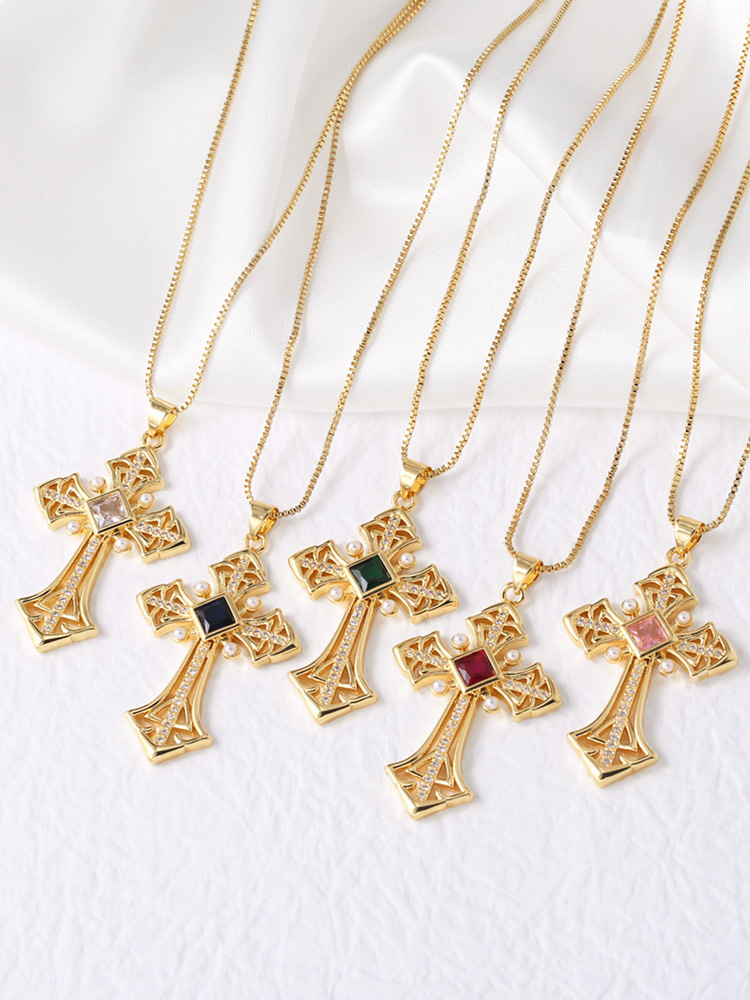 AS jewelry Europe and the United States hot selling colored zircon cross pendant necklace versatile necklace clavicle chain nka075
