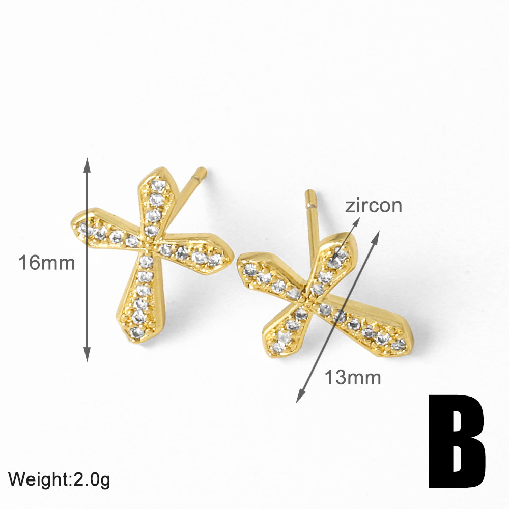 AS jewelry Europe and the United States hot selling cross earrings female copper plated 18k gold full zircon earrings era369