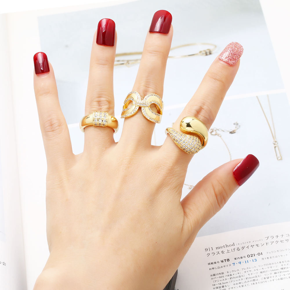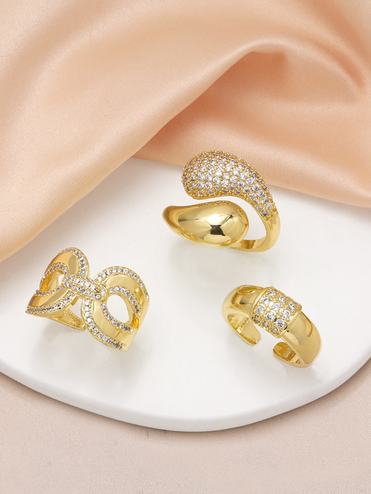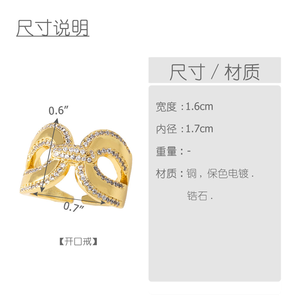 AS jewelry Europe and the United States hot selling cross water drop open ring female copper plated 18k gold full zircon ring rih35