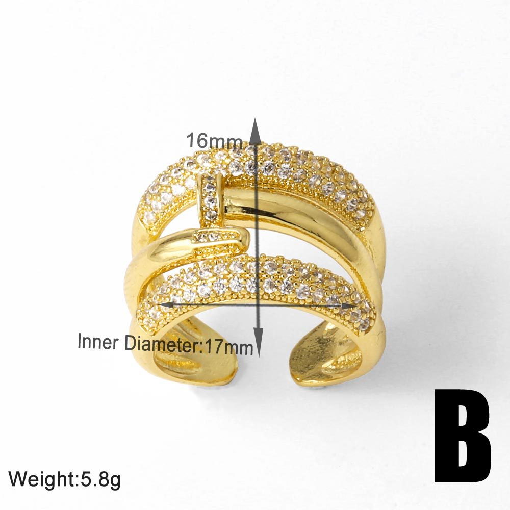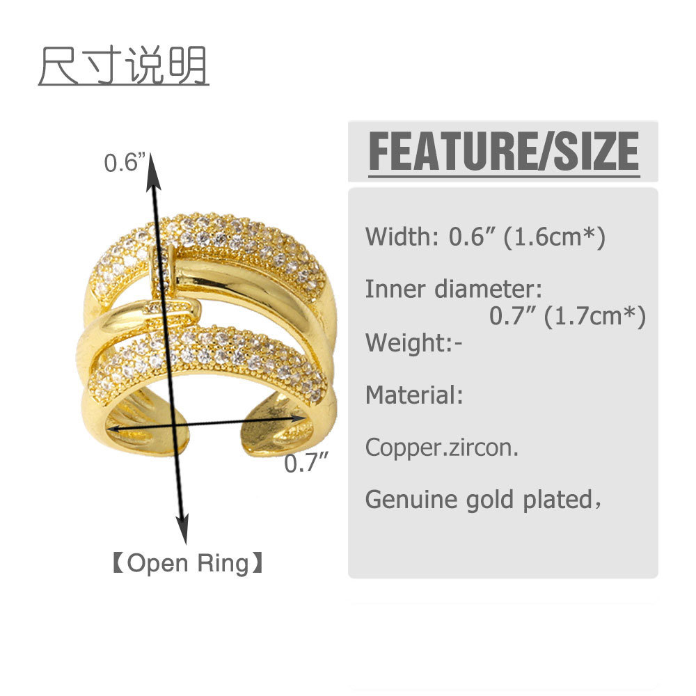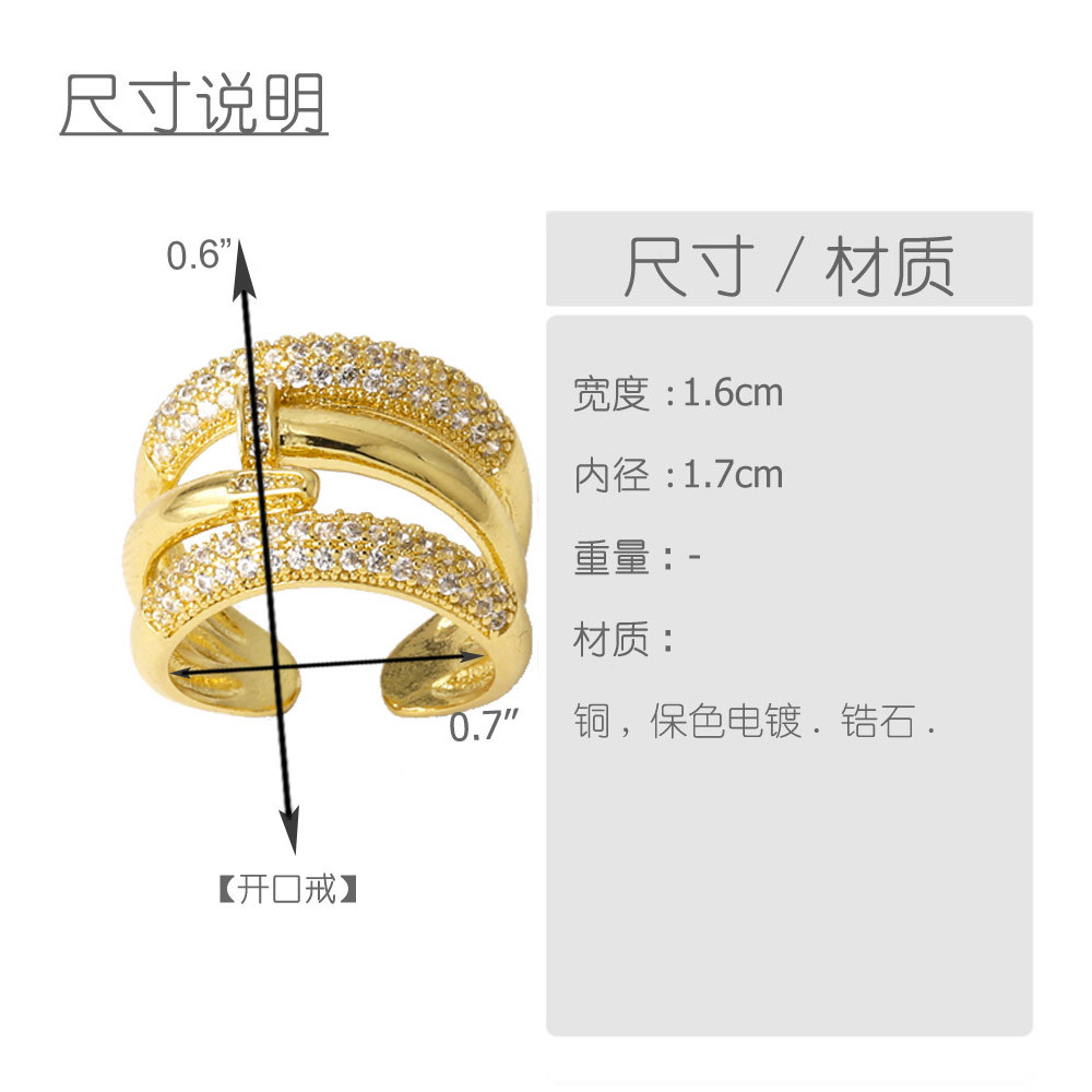 European and American luxury design ring fashionable temperament horse eye zircon ring multi-layer hollow design index finger ring