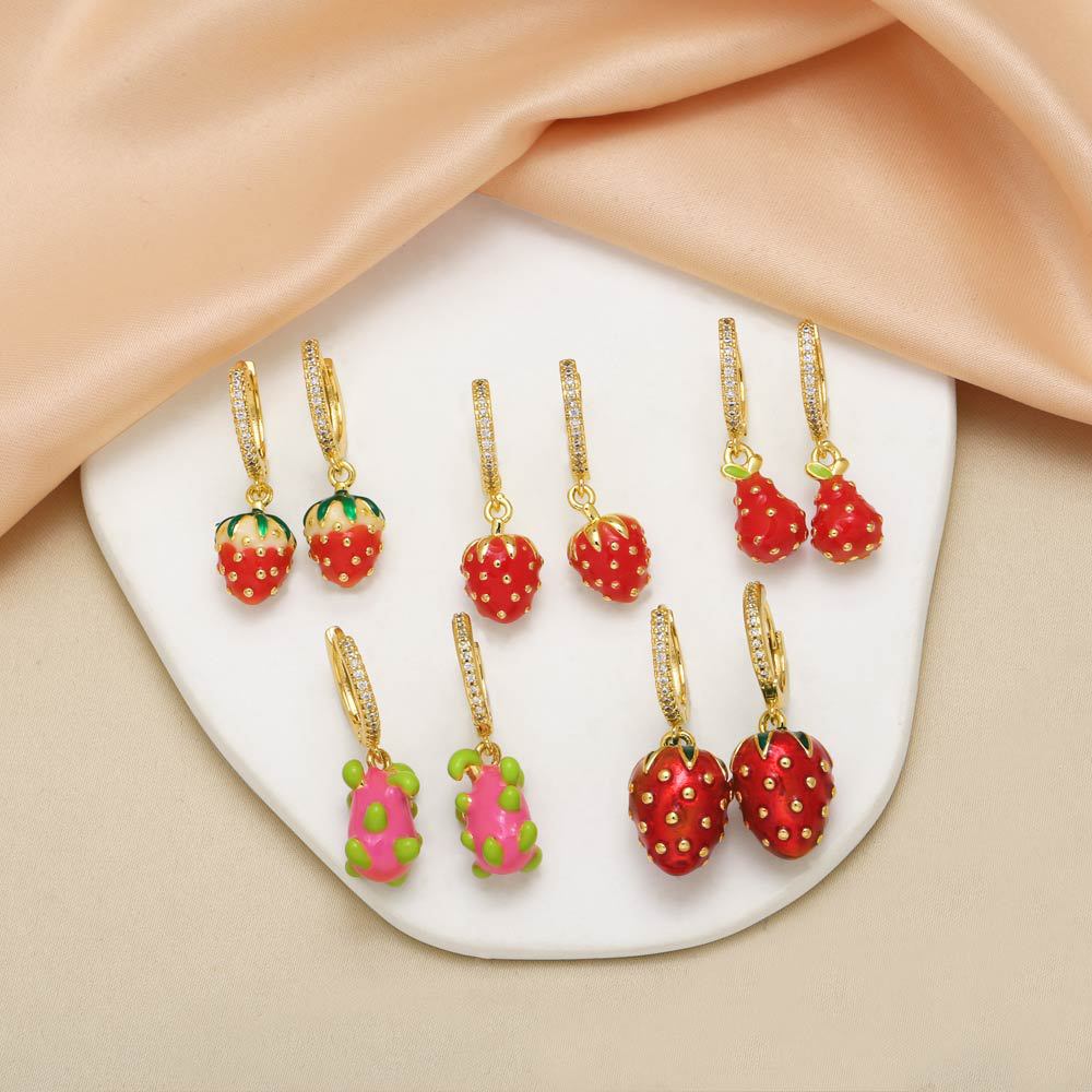 AS jewelry Europe and the United States hot selling fruit strawberry dragon fruit oil drop gold-plated pendant earrings earrings female ery98