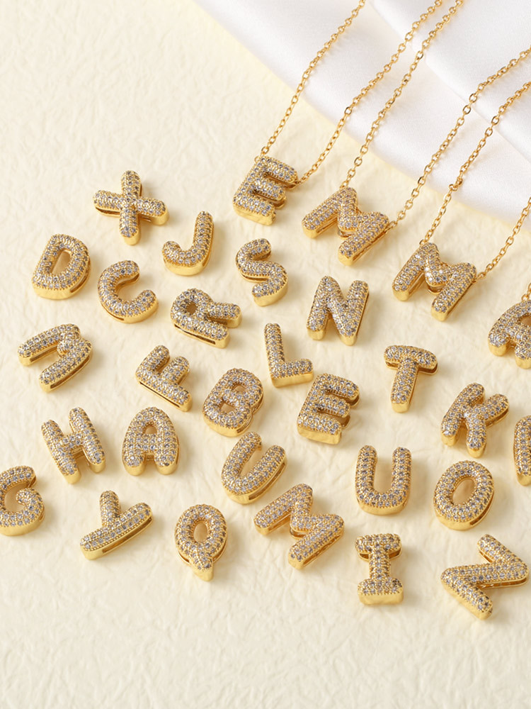 Letter necklace European and American new color zircon necklace with diamond surname English AZ letter necklace nkp25