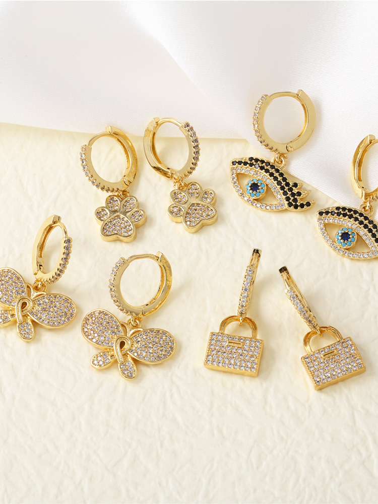 AS jewelry Europe and the United States hot selling full zircon eye butterfly lock pendant earrings earrings earrings female era356