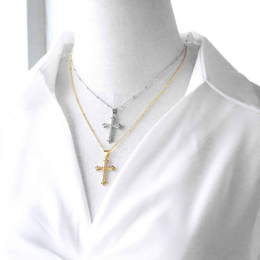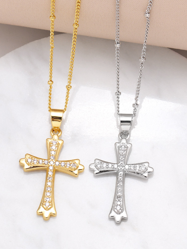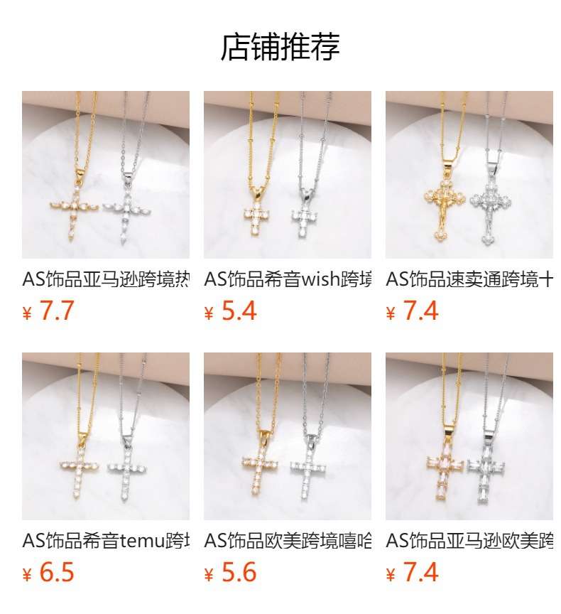 AS jewelry Europe and the United States hot selling full zircon high-end cross necklace female gold-plated clavicle chain nkb597