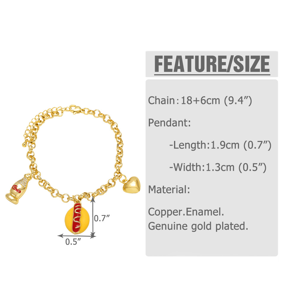 AS jewelry Europe and the United States hot selling gold-plated oil drop hamburger cola pendant bracelet bracelet bra20 bracelet