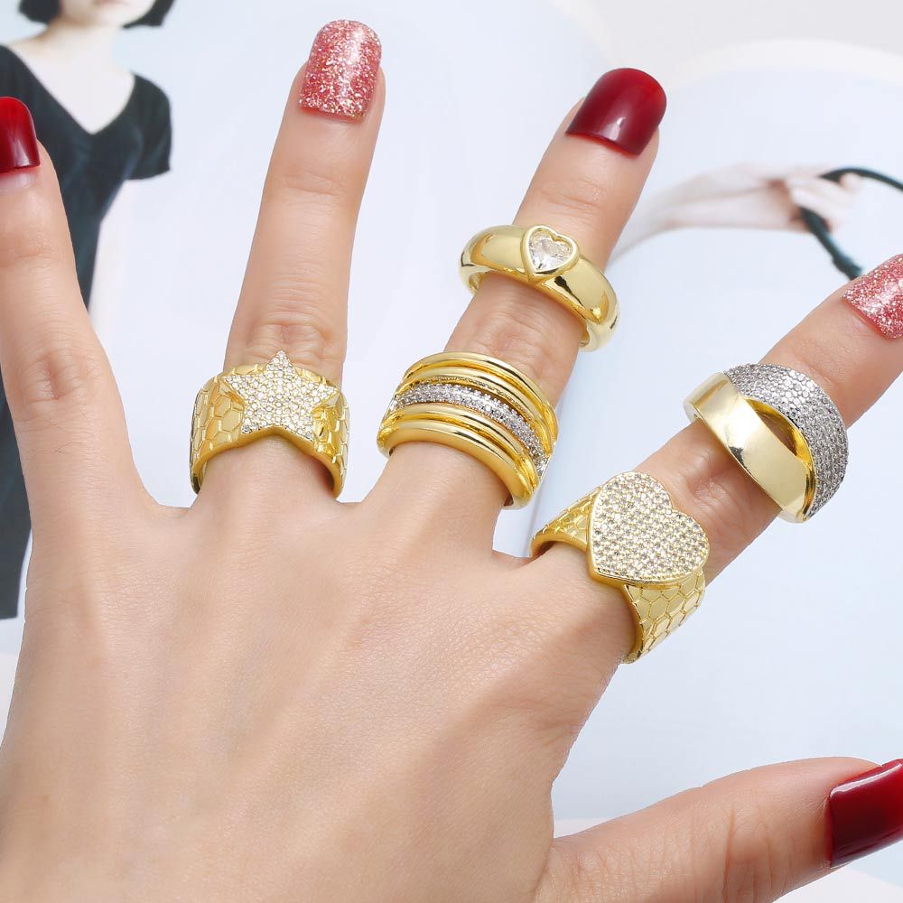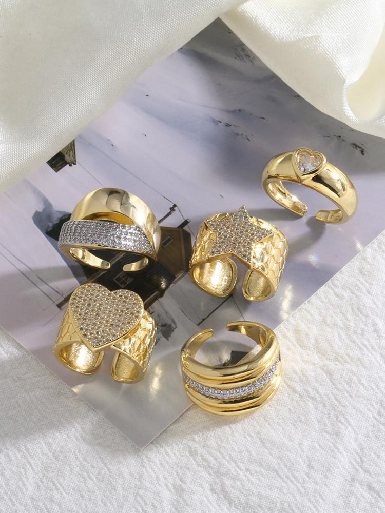 AS jewelry Europe and the United States hot selling high-end love heart five-pointed star open ring gold-plated ring rik45
