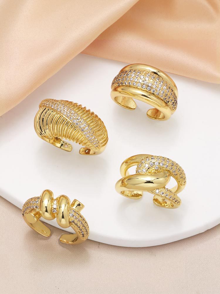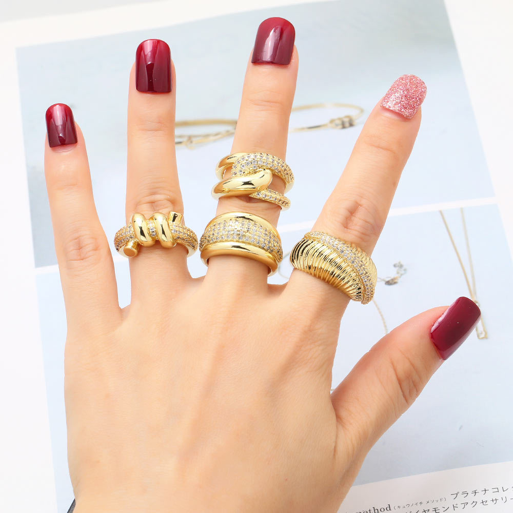 AS jewelry Europe and the United States hot selling horn ring female copper plated real gold inlaid zircon open ring rih36