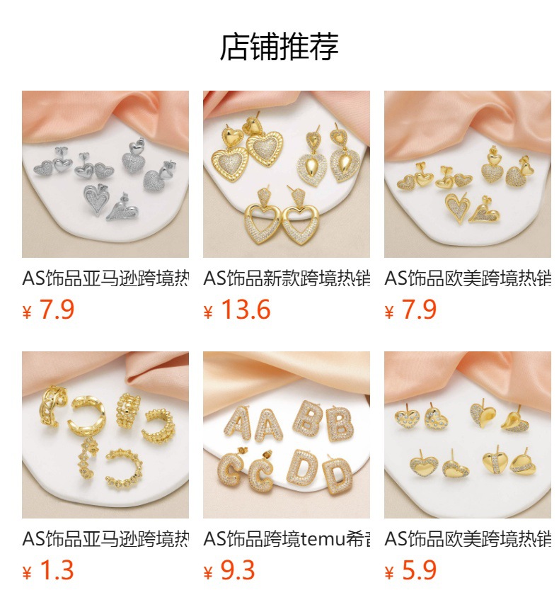 AS jewelry Europe and the United States hot selling love copper plated real gold earrings women full of zircon hollow versatile earrings era394