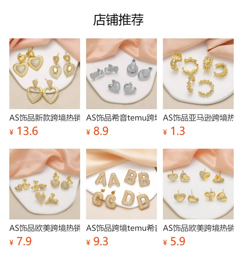 AS jewelry Europe and the United States hot selling love pendant earrings female gold-plated micro zircon heart-shaped earrings era395