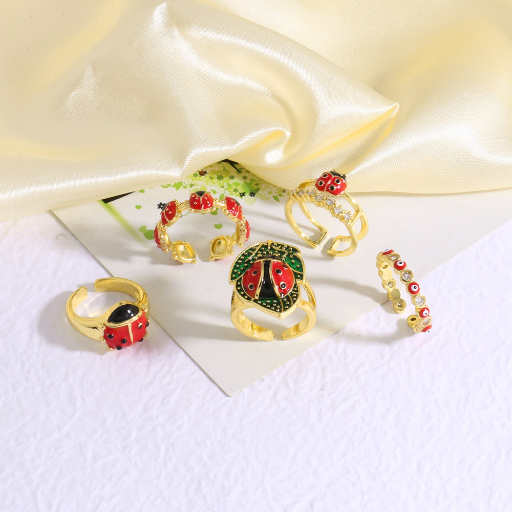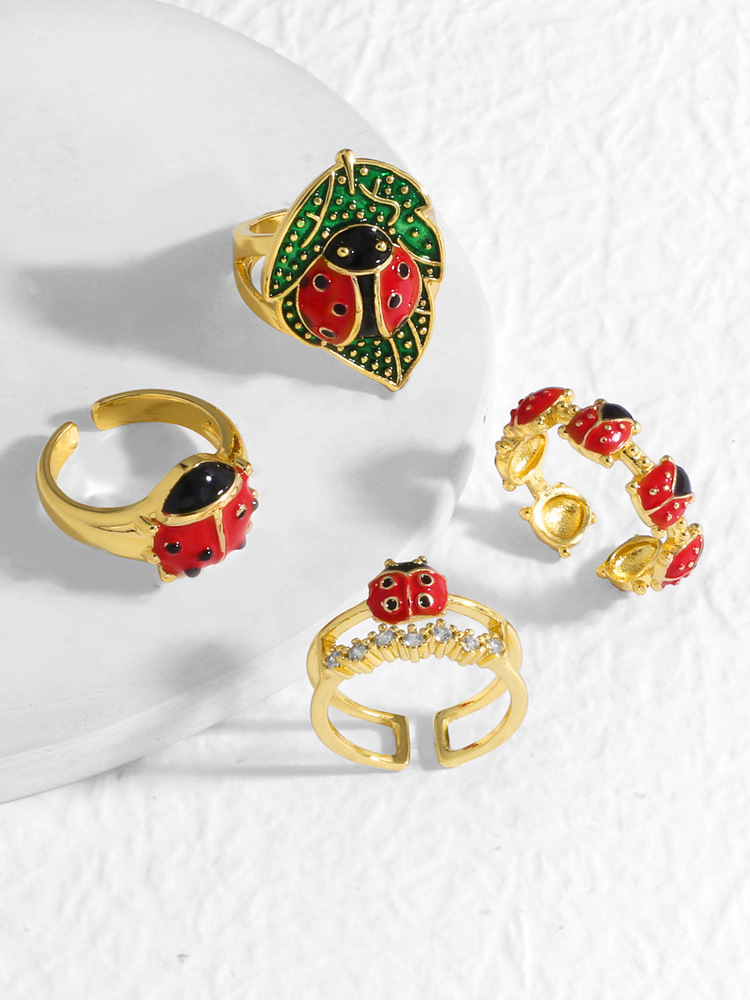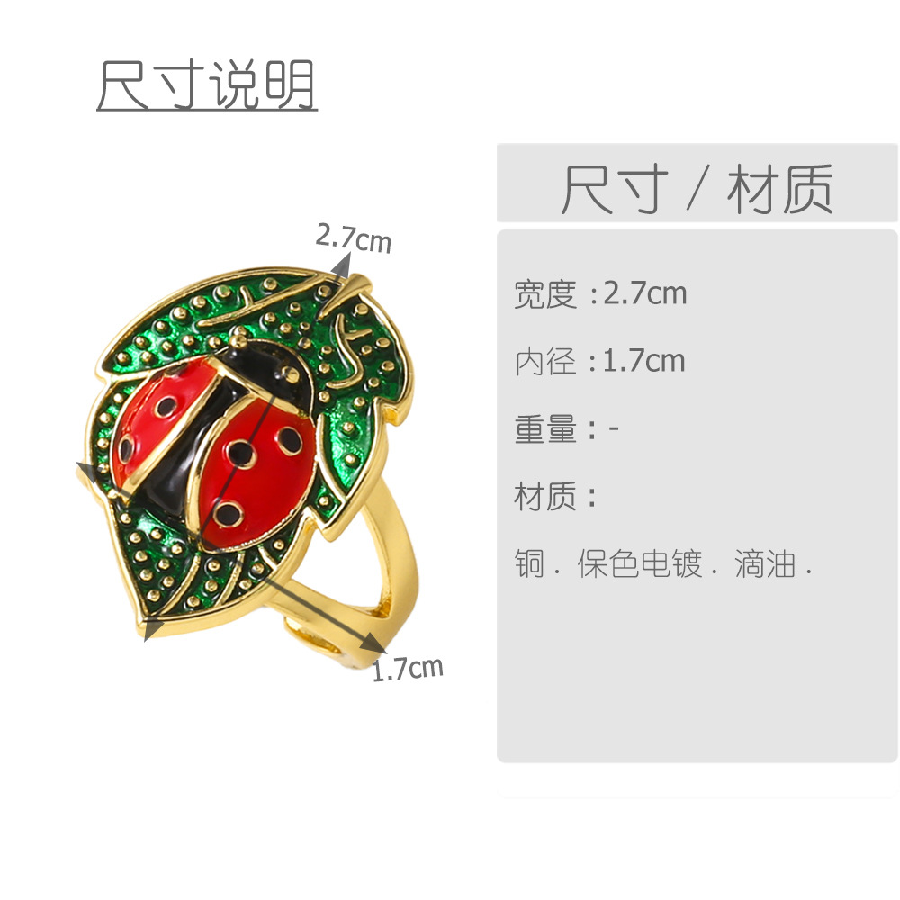 AS jewelry Europe and the United States hot selling new copper plated real gold seven-spot ladybug oil drop insect ring ring rij07 ring