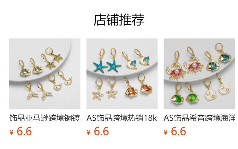 AS jewelry ocean wind drop oil color starfish earrings female gold-plated fish earrings female erz05