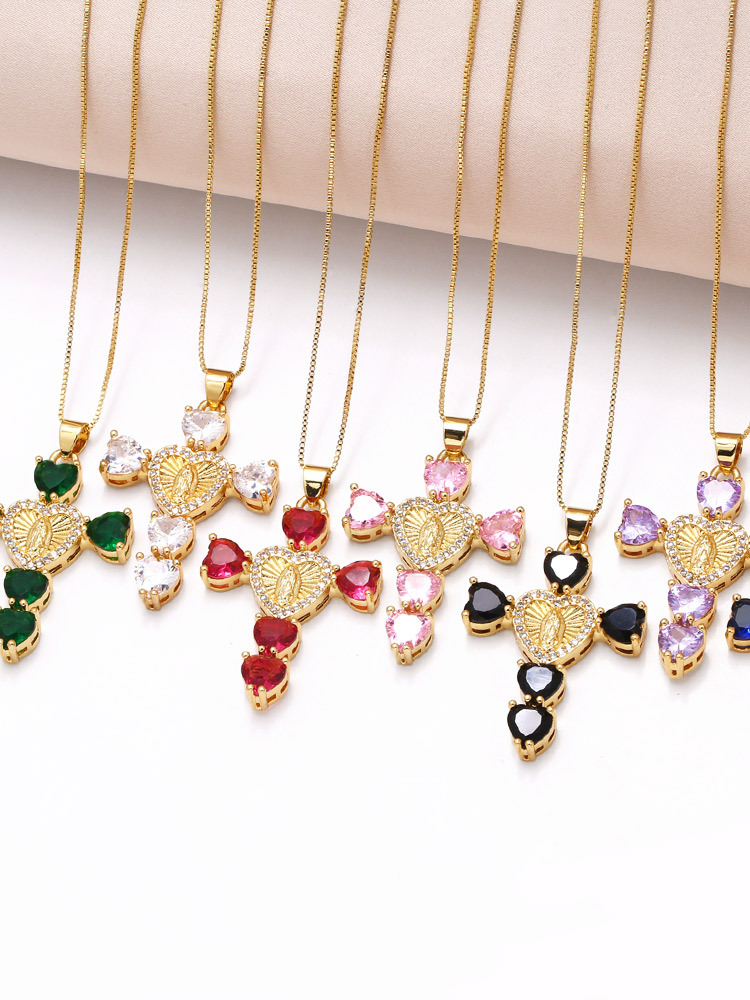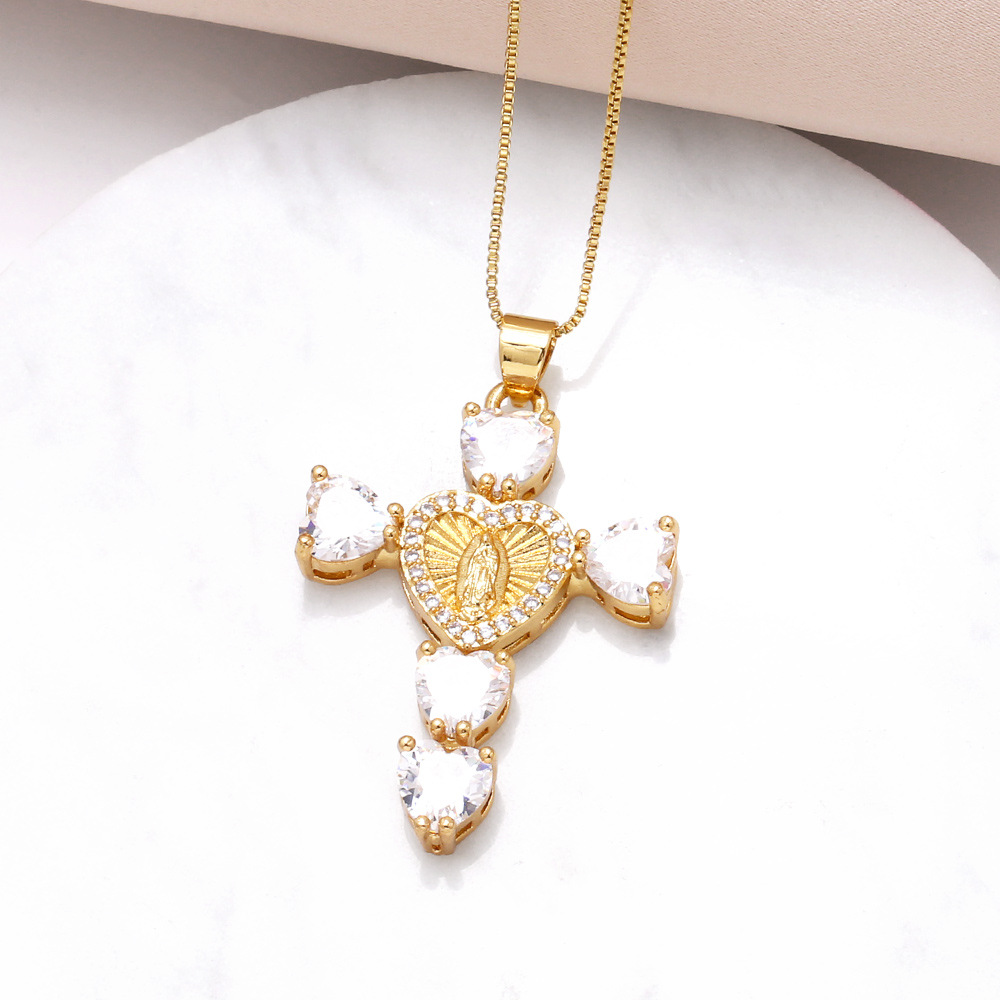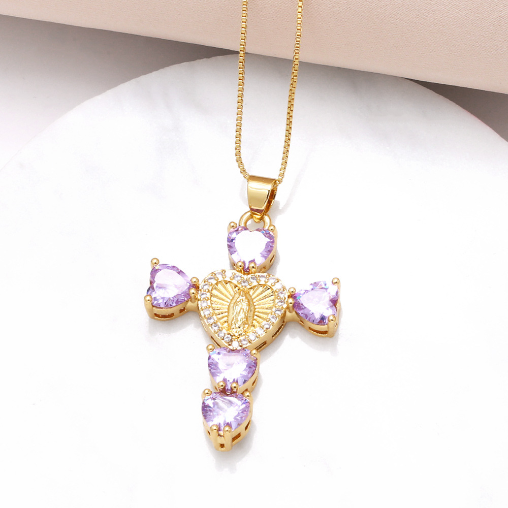 AS jewelry Europe and the United States hot selling Our Lady cross necklace color zircon pendant love clavicle chain nkb182