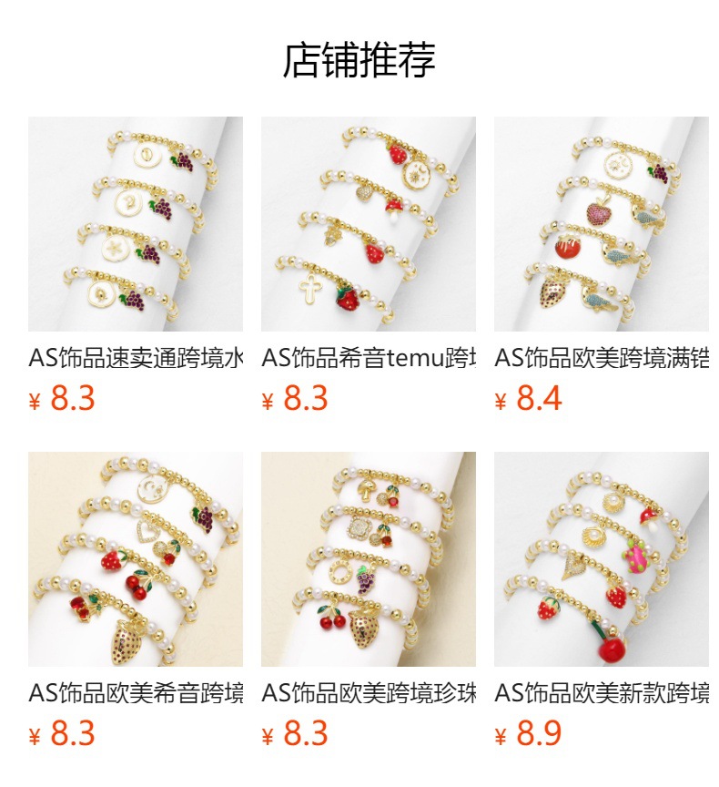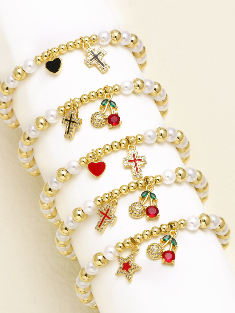 AS jewelry Europe and the United States hot selling pearl beads cross cherry fruit pendant gold-plated bracelet female brm82